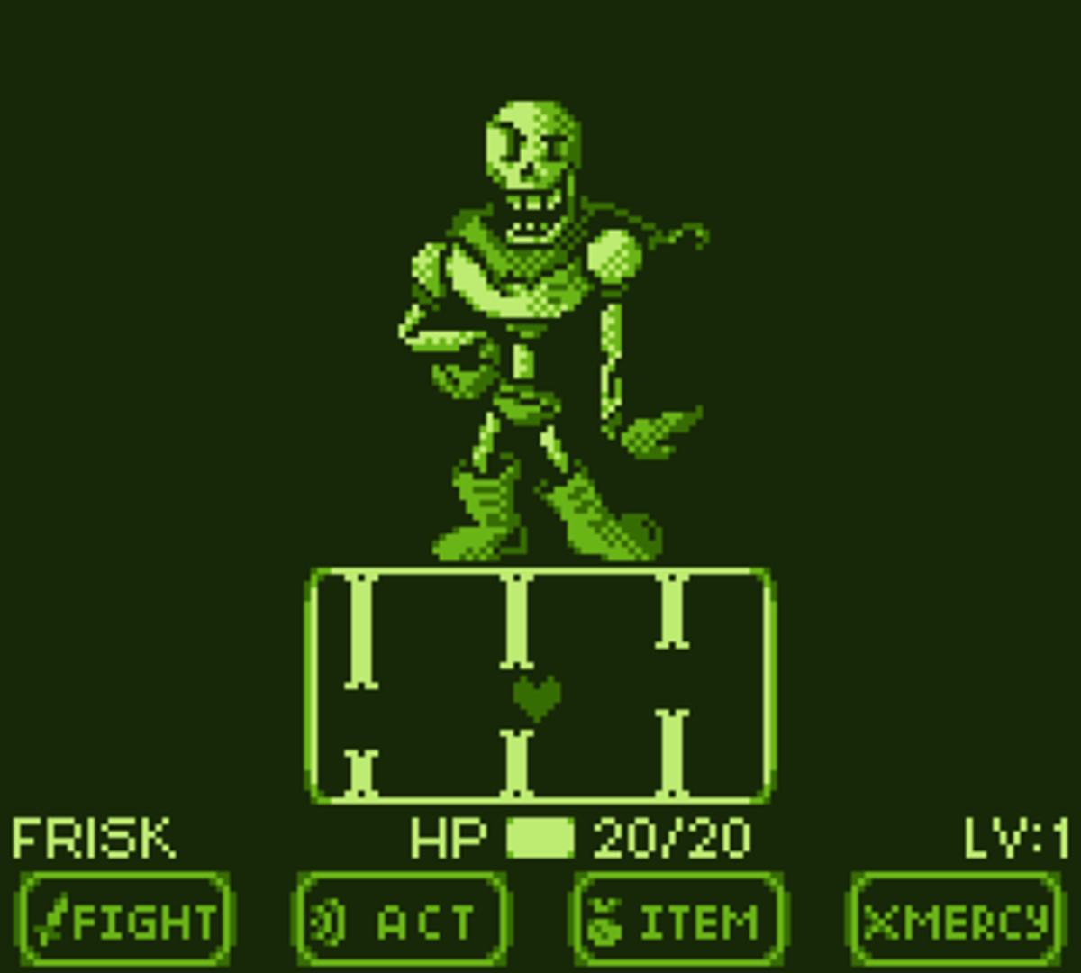 An Undertale Fan-Game containing remade and altered versions of all of Undertale's main boss fights, in addition to a new one. All of it is created in the style of an original Gameboy, using the same screen resolution, color limitations, and sound limitations (for the most part).