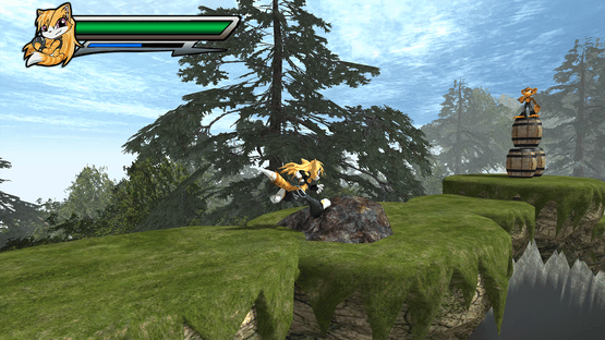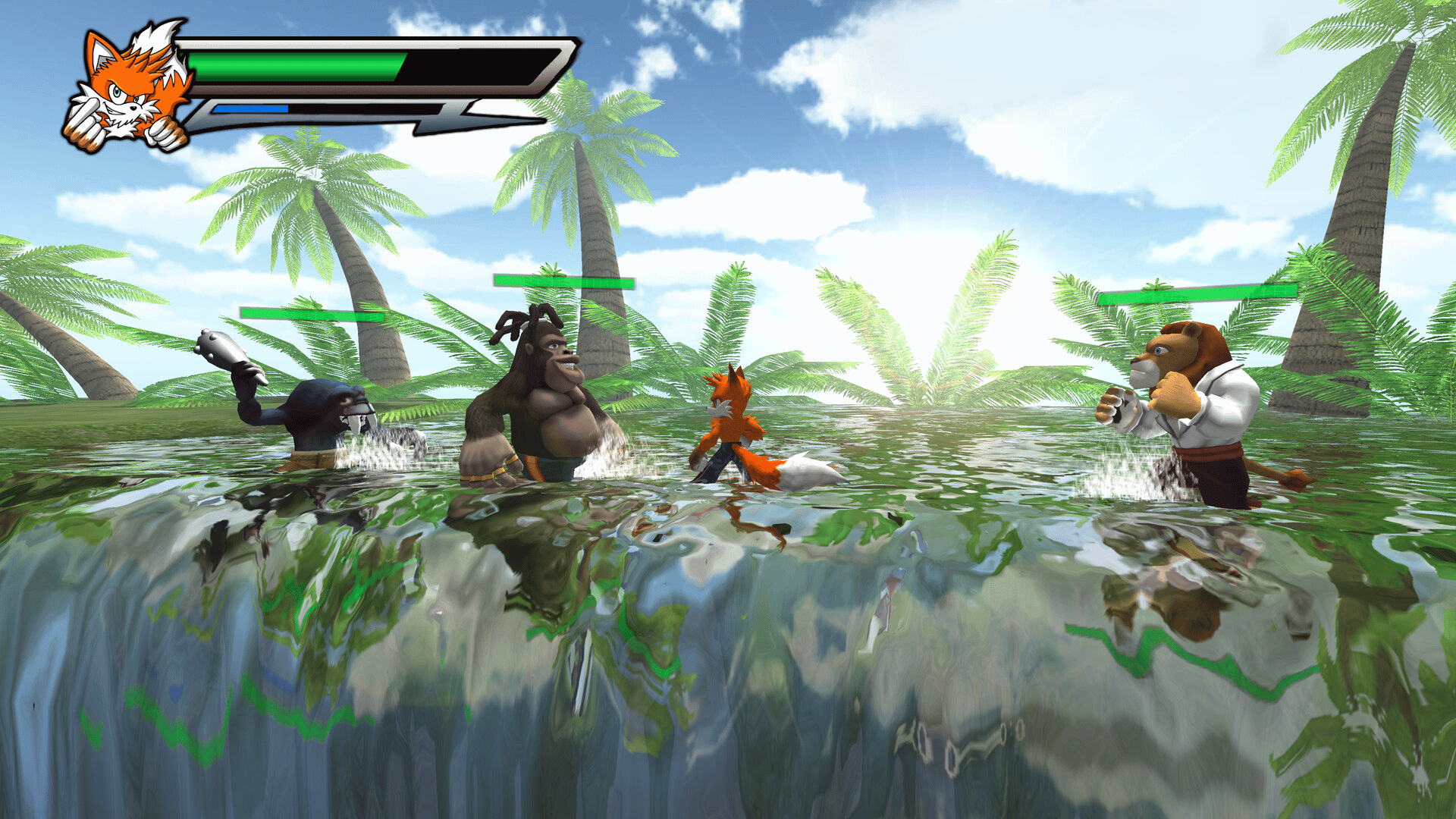 3D animal anthropomorphic characters, horizontal scrolling, action-adventure game, exciting fighting moves, and gorgeous background images. Controls are in side-scrolling combat mode: move left, move right, jump, punch attack, kick attack, dodge, wall jump, and special move.