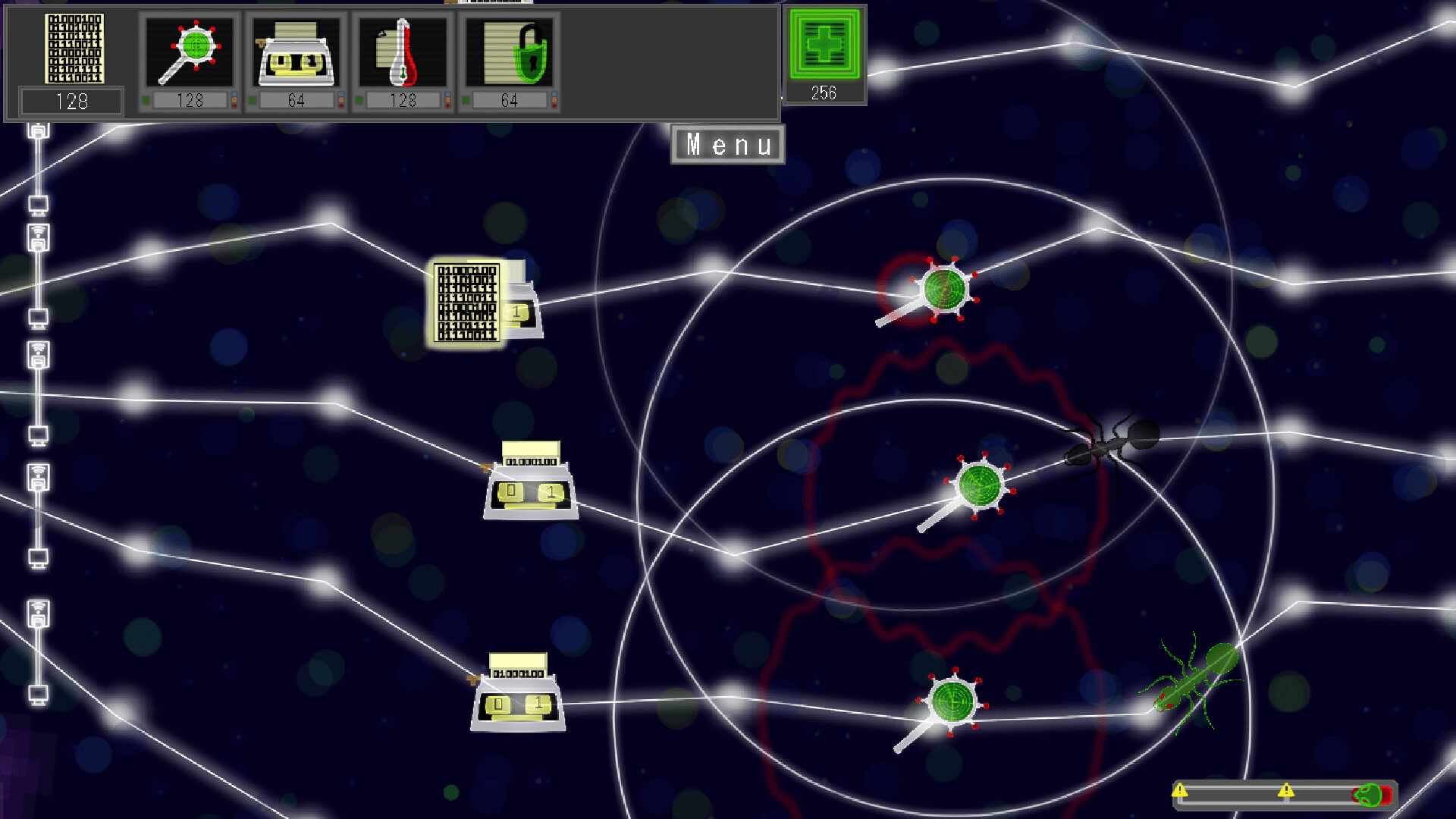 Peter's Apostles is a strategy game of the Tower Defense genre set in a Cyberpunk world where you place a large arsenal of Towers, or here called Arms, capable of stopping and destroying the Malwares and Malicious programs and messages that threaten the security of the server you protect.