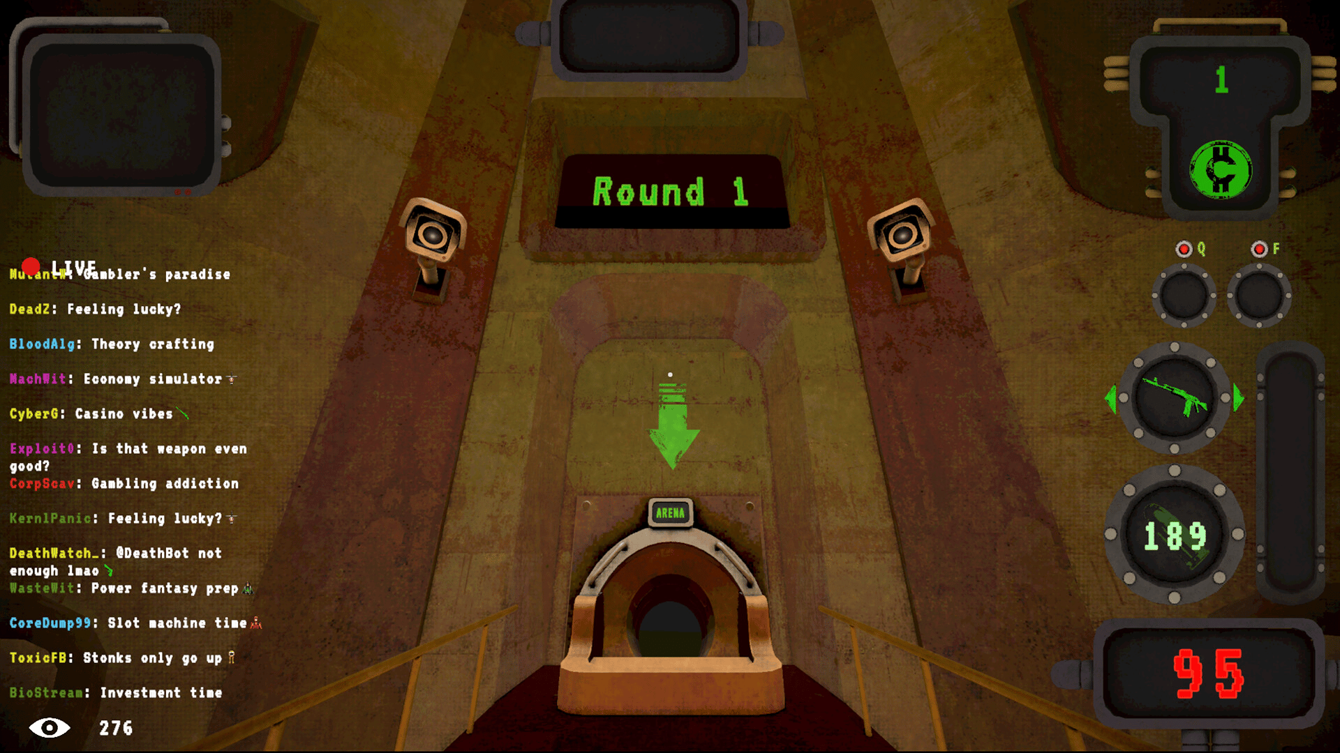 Roguelike shooter set in a dystopian, livestreamed gameshow. Obliterate waves of deformed freaks, earn donations from your sadistic audience and gamble your earnings for upgrades. Your life is a Performance. Your Death is Content.
