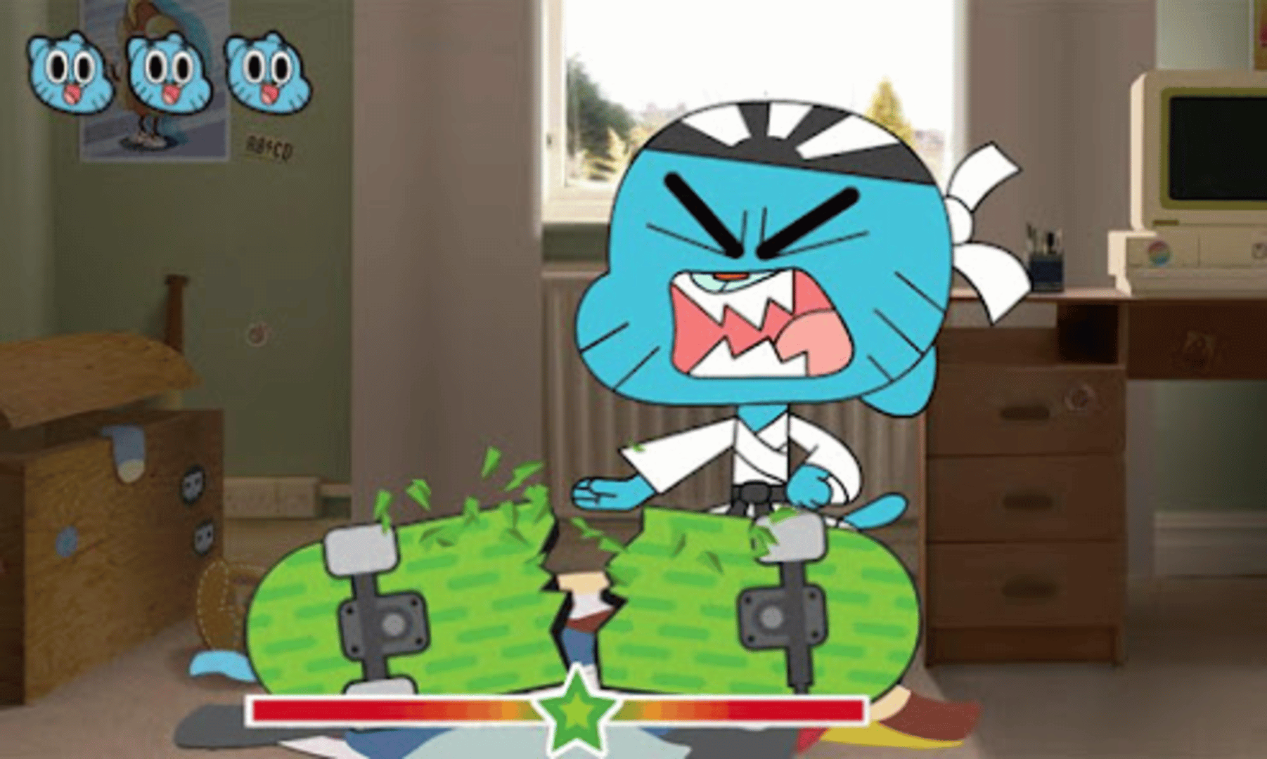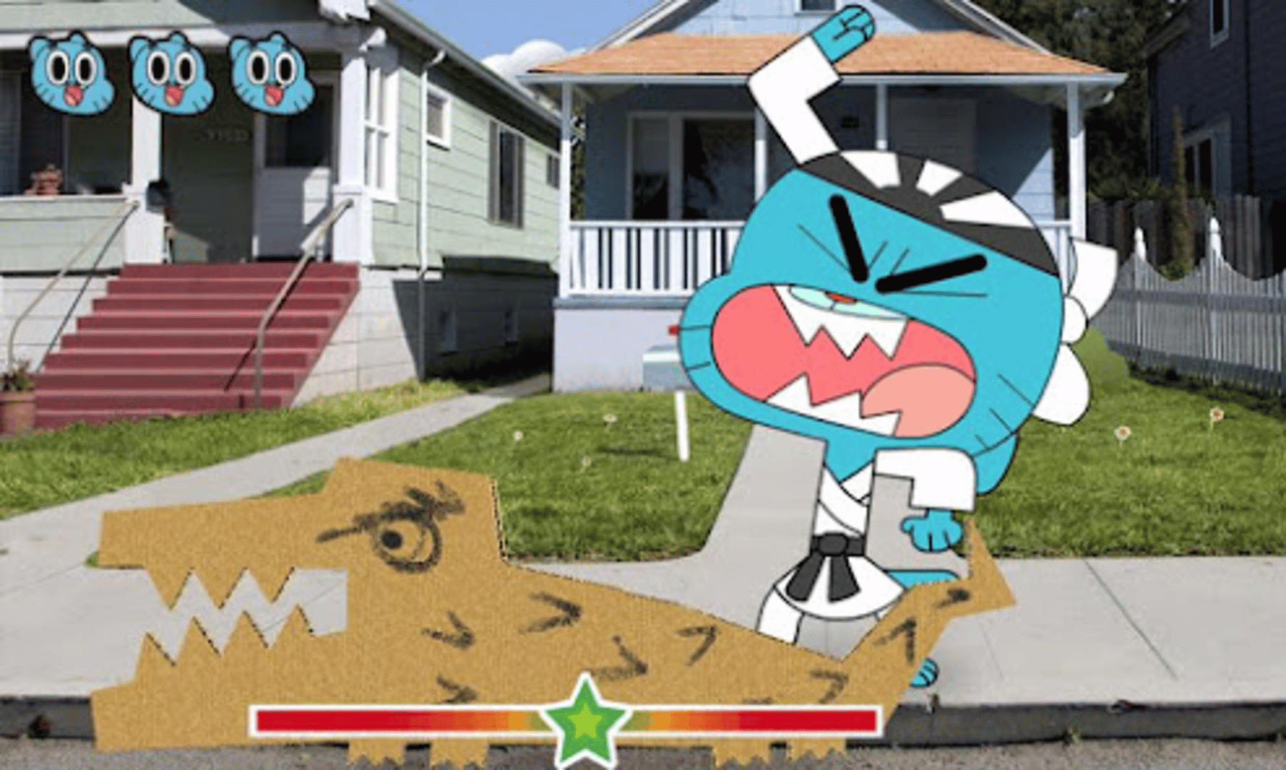 Journey into “The Amazing World of Gumball” and play games with all your favourite characters! Karate Chop Challenge Help Gumball chop his way through objects such as TVs, evil tree stumps and even cardboard crocodiles in his quest to become a Karate Master. Time your swipes to chop through objects, but make sure you don’t miss or risk becoming a Karate Weiner. Darwin’s Dodge Ball Become the ultimate dodge ball champion with Darwin. Tilt the device to dodge balls. Tap to fire at the other characters as they run past. Collect special bonus shots, extra lives and time bonuses to help you set the best high score. Character Creator Let your imagination loose as you build characters using over 50 different body parts from the show. Take a photo of anything - your dad, your hamster, your house and transform them into your very own Gumball character.