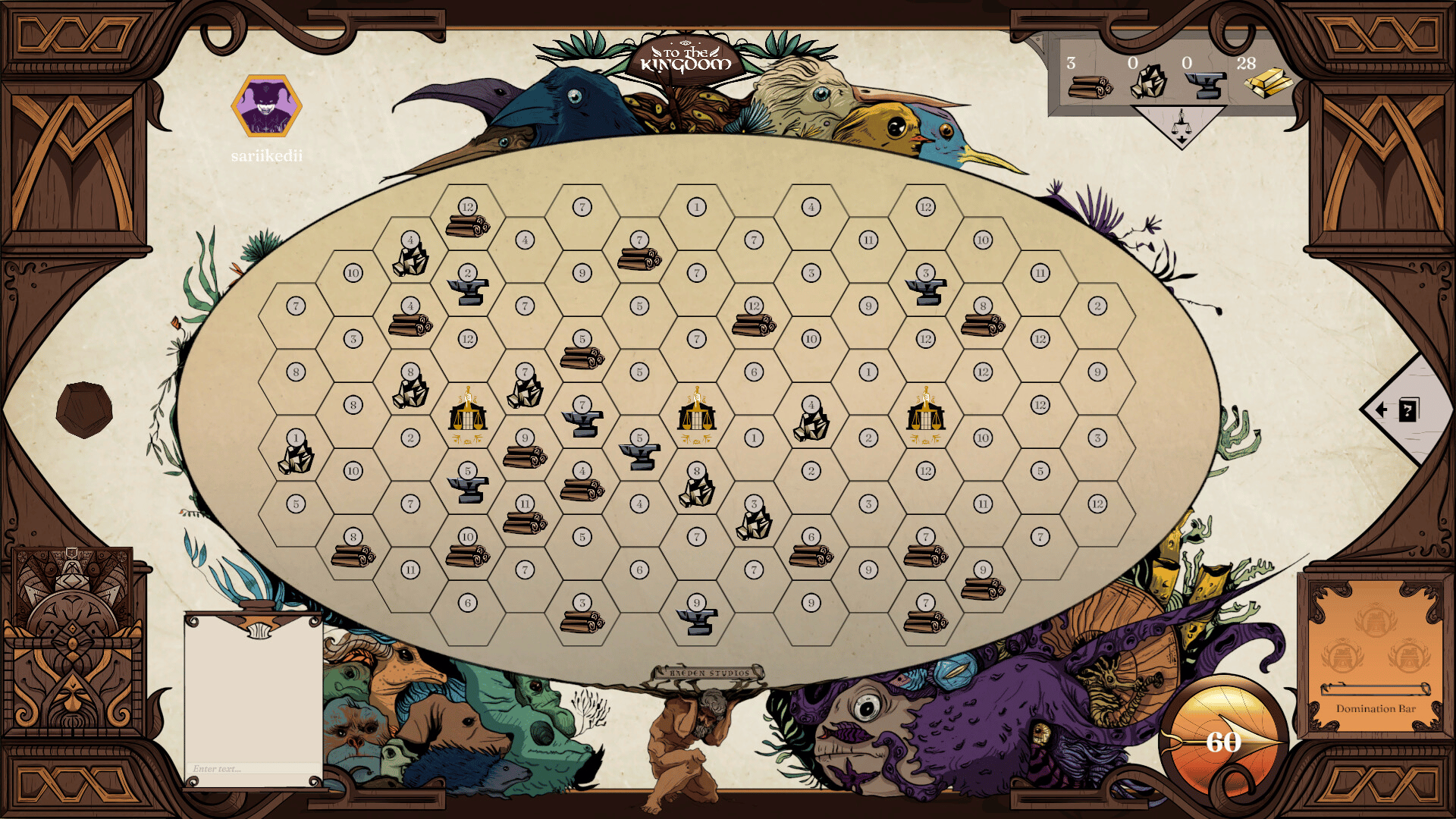 Build your kingdom in this strategic multiplayer board game. Plan your cities and villages carefully, manage resources and cards wisely, and outsmart your rivals. Master the game's rules and sharpen your tactics as you march To the Kingdom. Only the most cunning will claim victory!