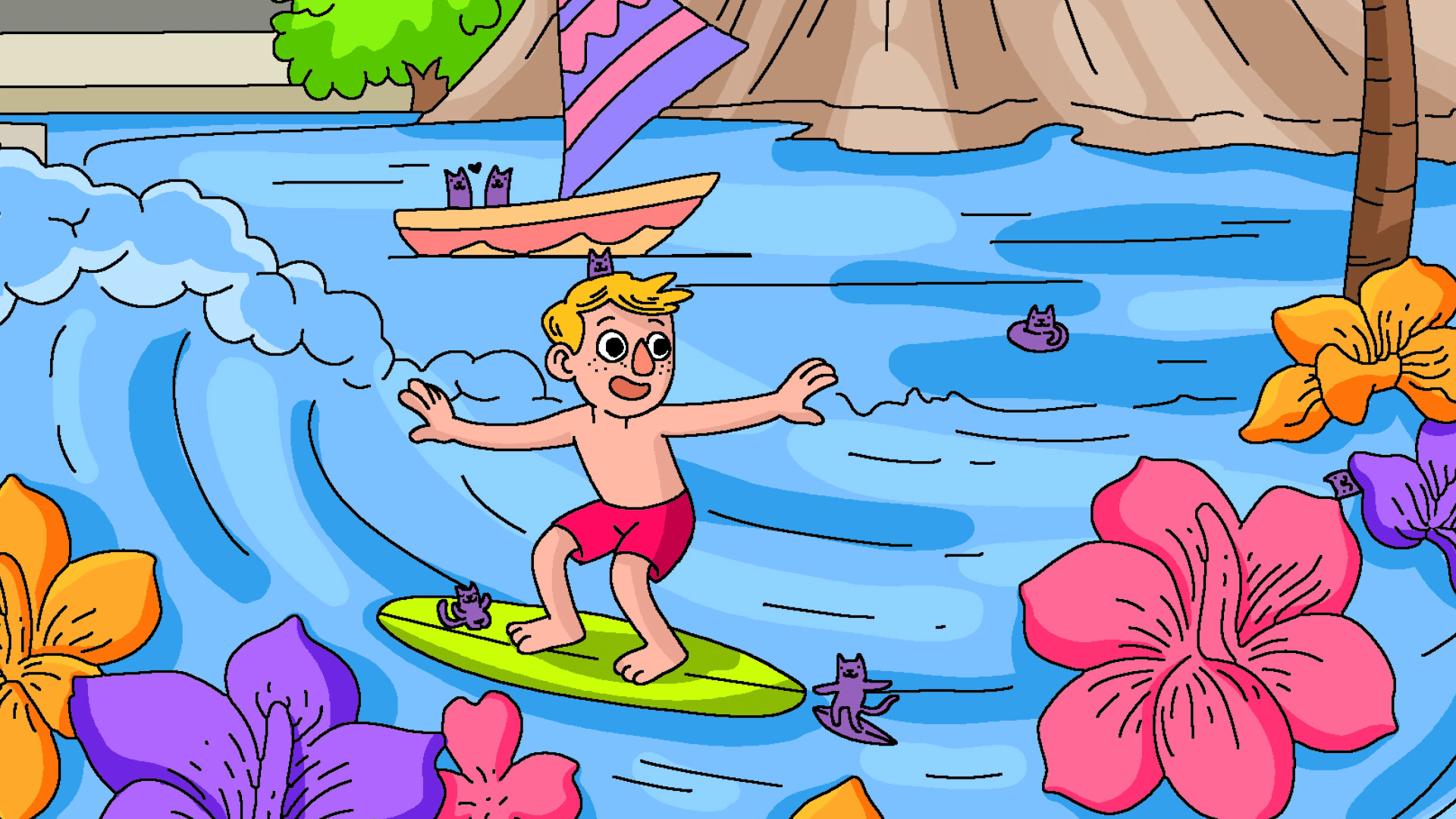 Grab your crayons and hunt for 100 hidden cats across a beautifully hand-drawn map. Play solo or invite a friend to join online, then bring each scene to life with guided color-by-numbers or your own palette — all in a relaxing, soothing atmosphere.