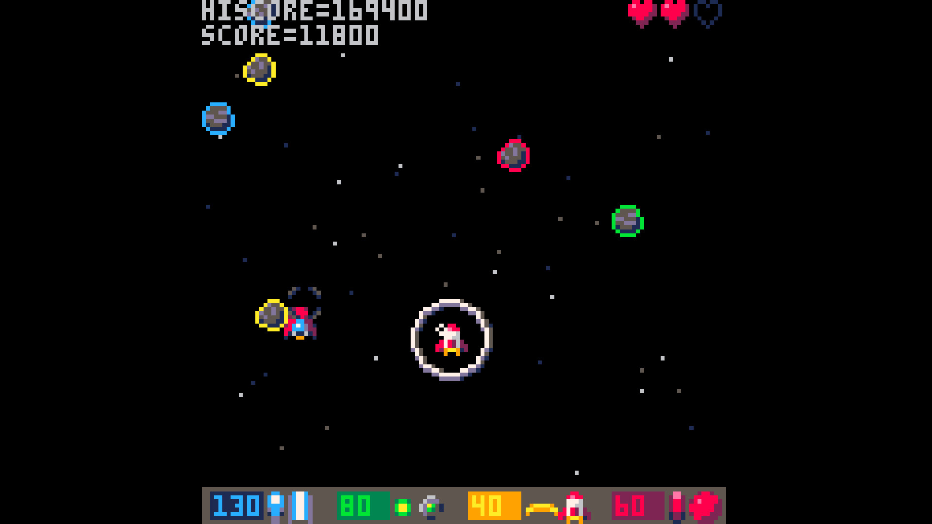 Space Miner is a shmup with roguelike elements and weapon customization. Destroy asteroids, collect different minerals to improve your ship, and discover new places on the galaxy!