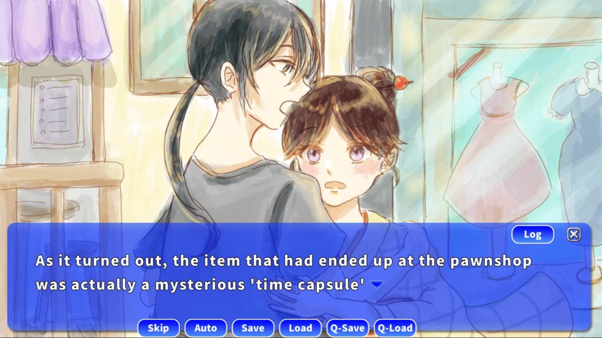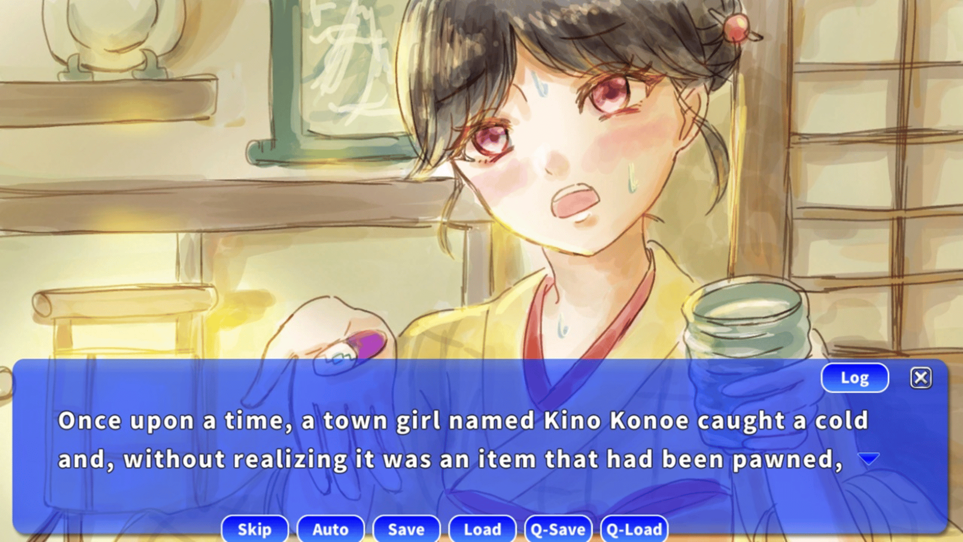 The item passed around the pawn shop turns out to be a Time Capsule, a drug that will send you to the present day...! This is a story about the youth of the shinobi and kunoichi who are after it, and the samurai who help them! It's a slightly unusual visual novel adventure!