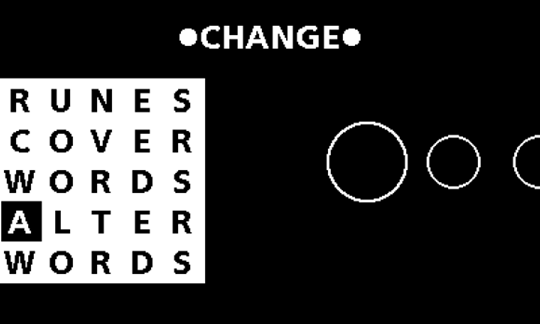 Lexgrid is a rule-discovery word game where players must find words in a 5x5 grid. As the game progresses, players will discover strange runes that change the clue in some way, and the meaning of each rune must be deduced by carefully examining the puzzles in each group.