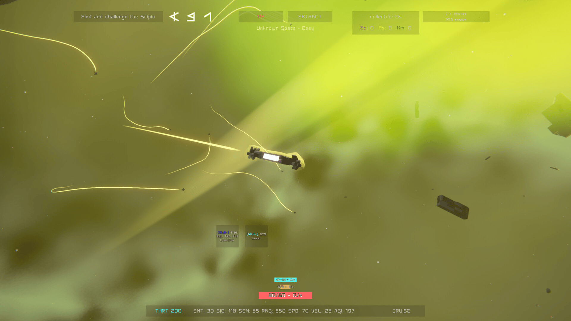 A space tactics extraction roguelite. Explore space, pick fights, collect loot, then escape. Upgrade and unlock new ships to strengthen your fleet and face tougher foes.