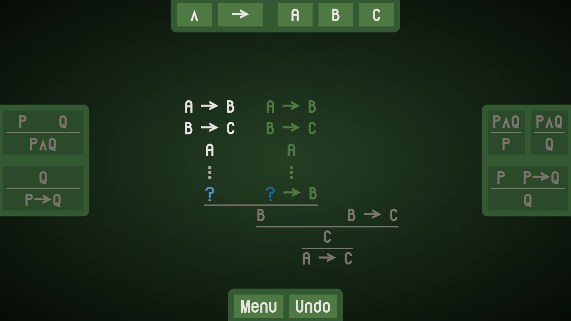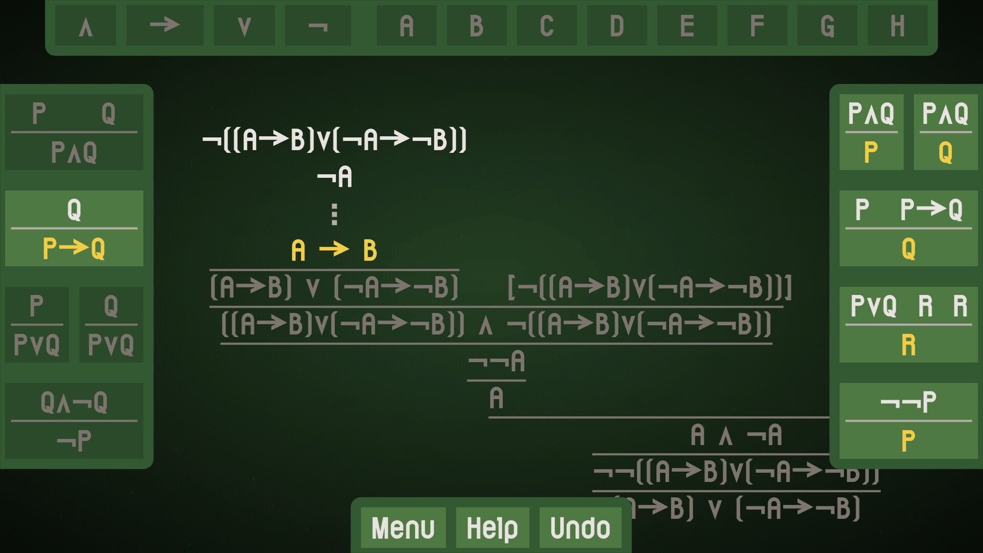 Minimalistic puzzle game where you build formal logical proofs.