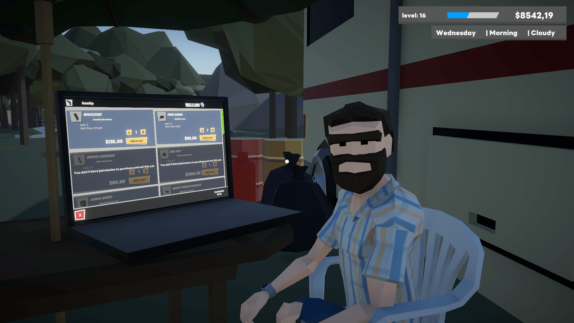 Run your own store from the ground up! Stock shelves, set prices, pay bills, and maintain a clean environment to boost your reputation. Buy goods from local suppliers across town. Bet your earnings and become the go-to destination for firepower.