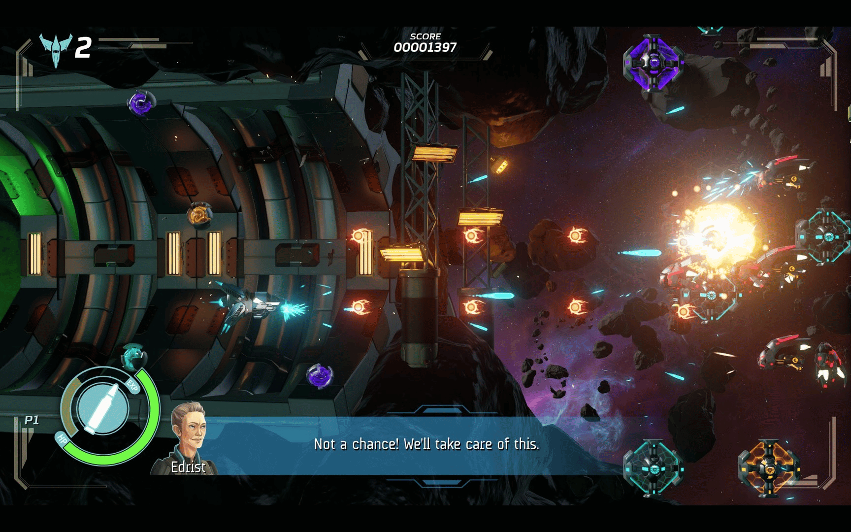 You command destructive ships to obliterate thousands of enemies, while weaving through intricate networks of invasive machine-organisms! Combining classic fast-paced shoot 'em up action with quick-thinking tactics of puzzlers, you must carefully match the right pieces to fly out of danger!