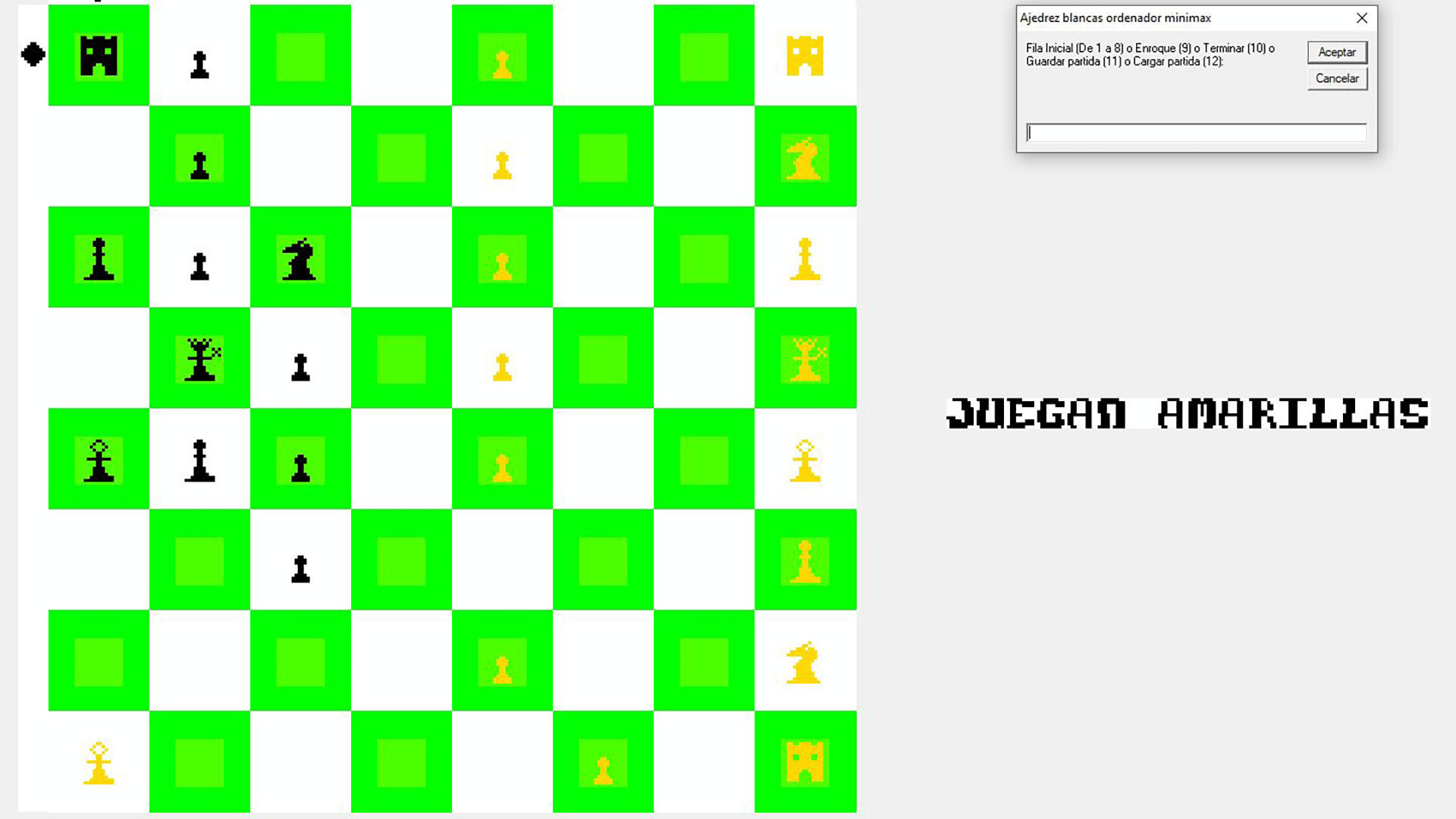 It is a chess game with the possibility of playing two players or playing against the computer. Castling, exchanging a pawn for another piece at the end of the board, drawing, recording and loading the game can be performed.