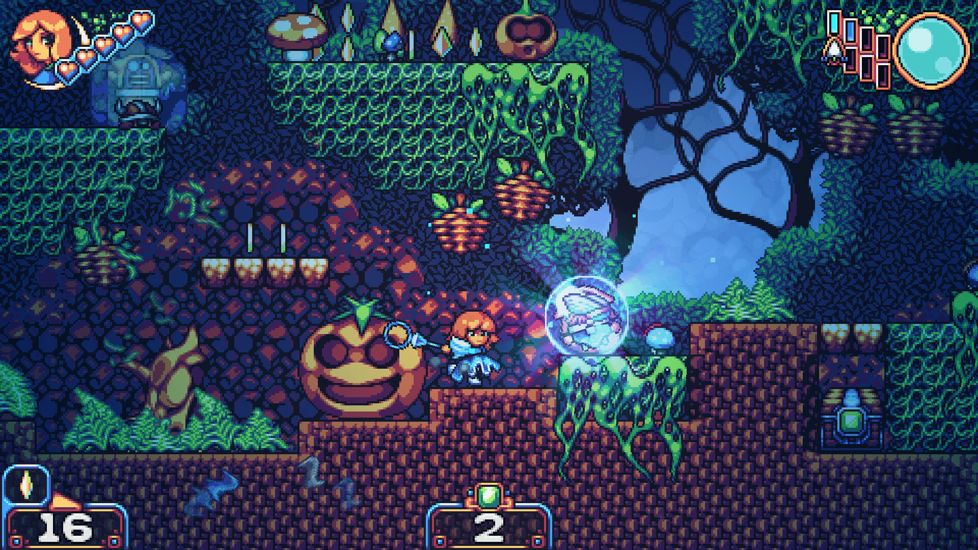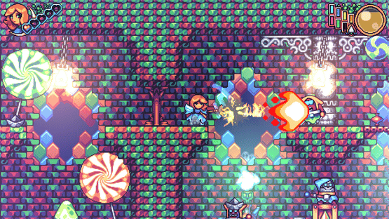 There is a trouble at the Magic University. The heart of magic has been stolen by Pastry Witches. Adventure across on a journey through a beautiful world drawn in pixel art style, buy magic wands, collect jewels and fight monsters to return the Magic Crystal.