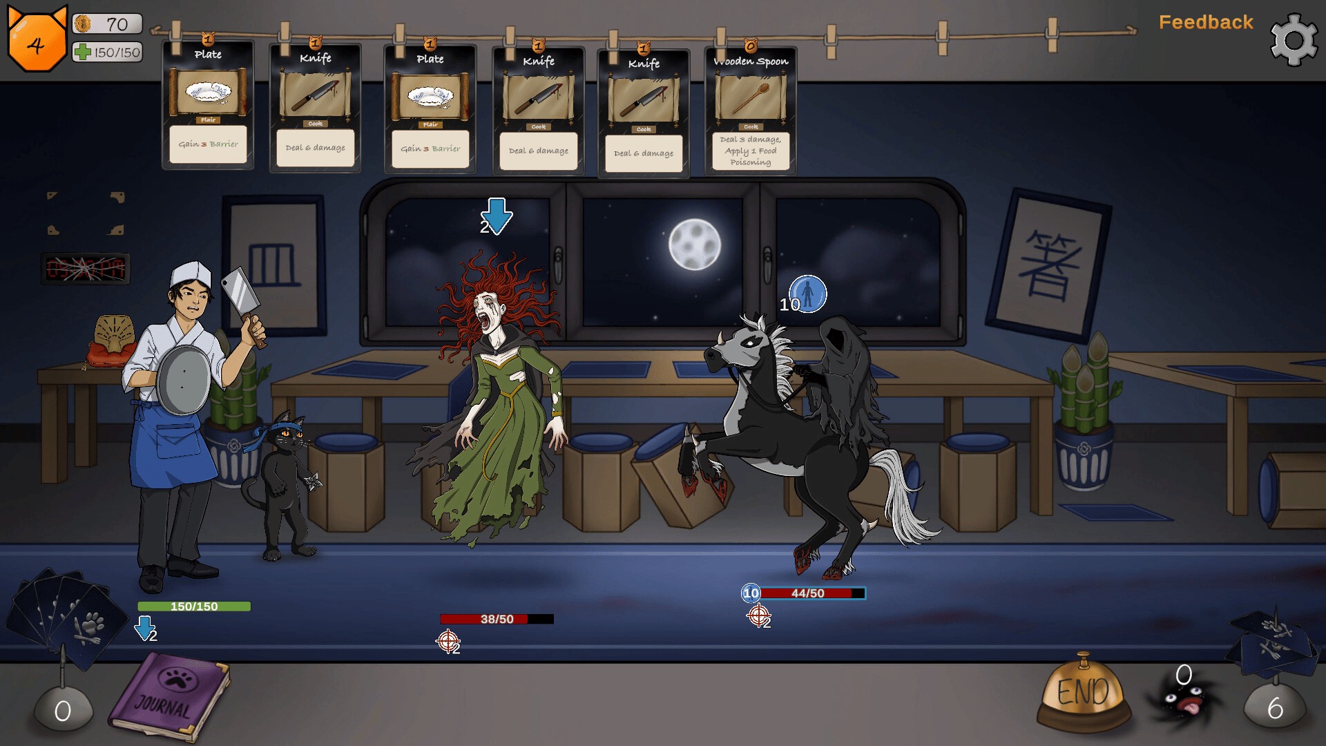 Use two decks of cards to serve food to your customers during the day! Then fight them off when they turn to monsters at night in this fun and unique deckbuilding roguelike!