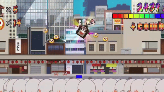 A 2D action game in which you use the two sticks on your controller to send the mikoshi into the sky in order to wake up the lazy god inside the mikoshi. Send the mikoshi flying, add up your score, and reach the target line to reach the goal!