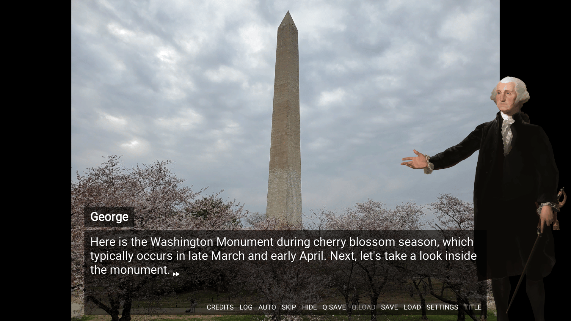 Learn all about George Washington in this visual novel biography containing rare photos from inside the Washington Monument, Washington's home at Mount Vernon, Yorktown where he achieved final victory in the Revolutionary War, and much more. Soldier, General, Spymaster, and President - this is George Washington! Part of the Important People of History series: 1. George Washington 2. Thomas Jefferson 3. Abraham Lincoln All three games about US Presidents releasing in 2026 to commemorate the 250th anniversary of the signing of the Declaration of Independence back in 1776 Proudly made in Washington’s home state of Virginia