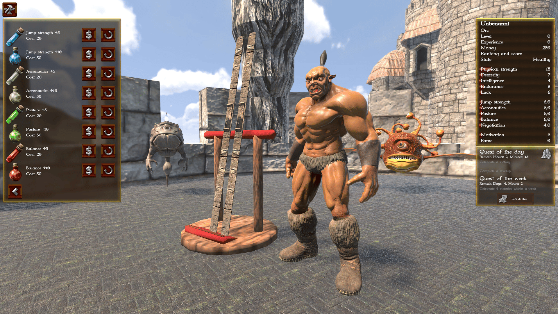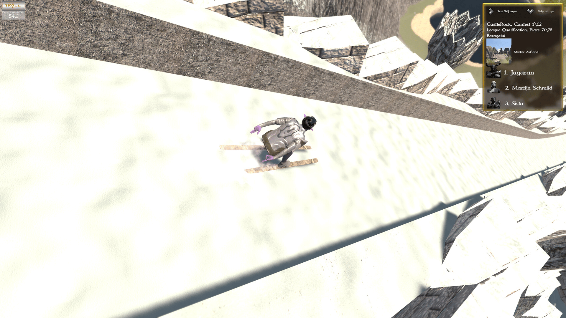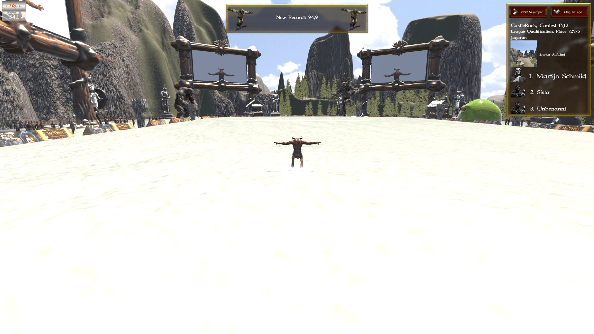 "Ultimate Mythic Ski Jumping League" is a mixture of a ski jump game but with lots of RPG elements. You can play alone or up to 75 players in one season. Currently only for multiplayer only local multiplayer is possible.
