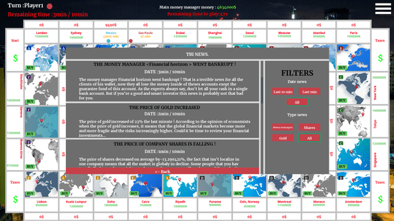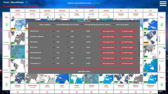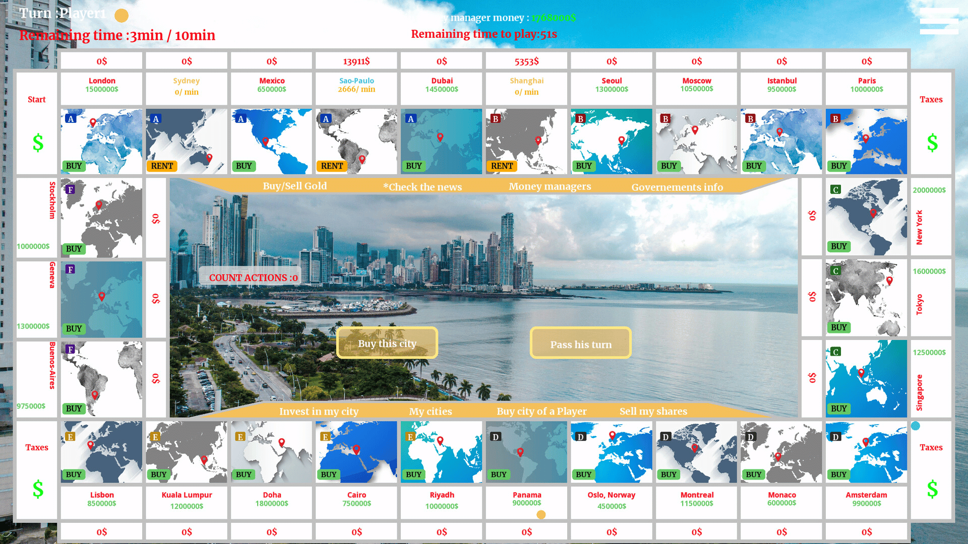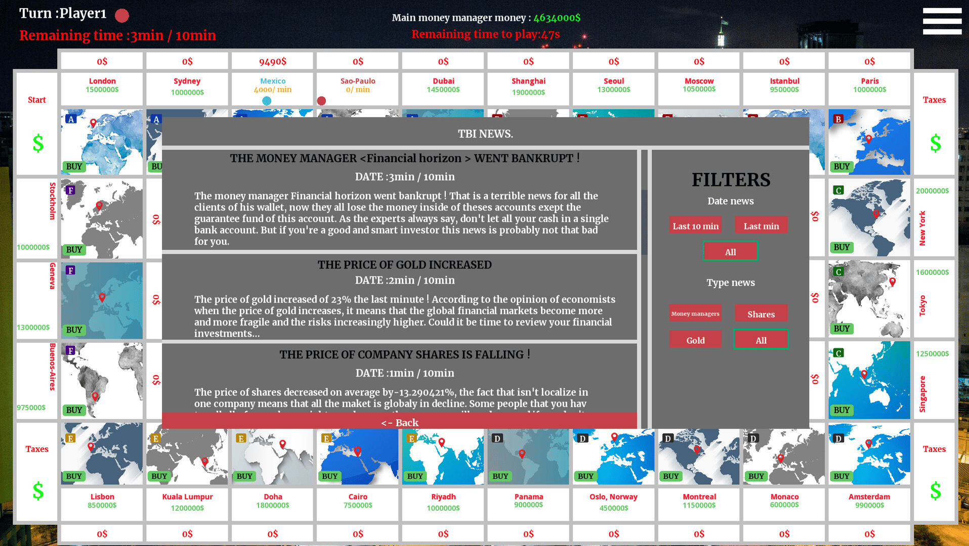 THE BEST INVESTOR is a strategic board game where you start with 5 million dollars, then face your opponents by making investments of all kinds in order to increase this financial wealth as much as possible in order to become the best investor of the game!