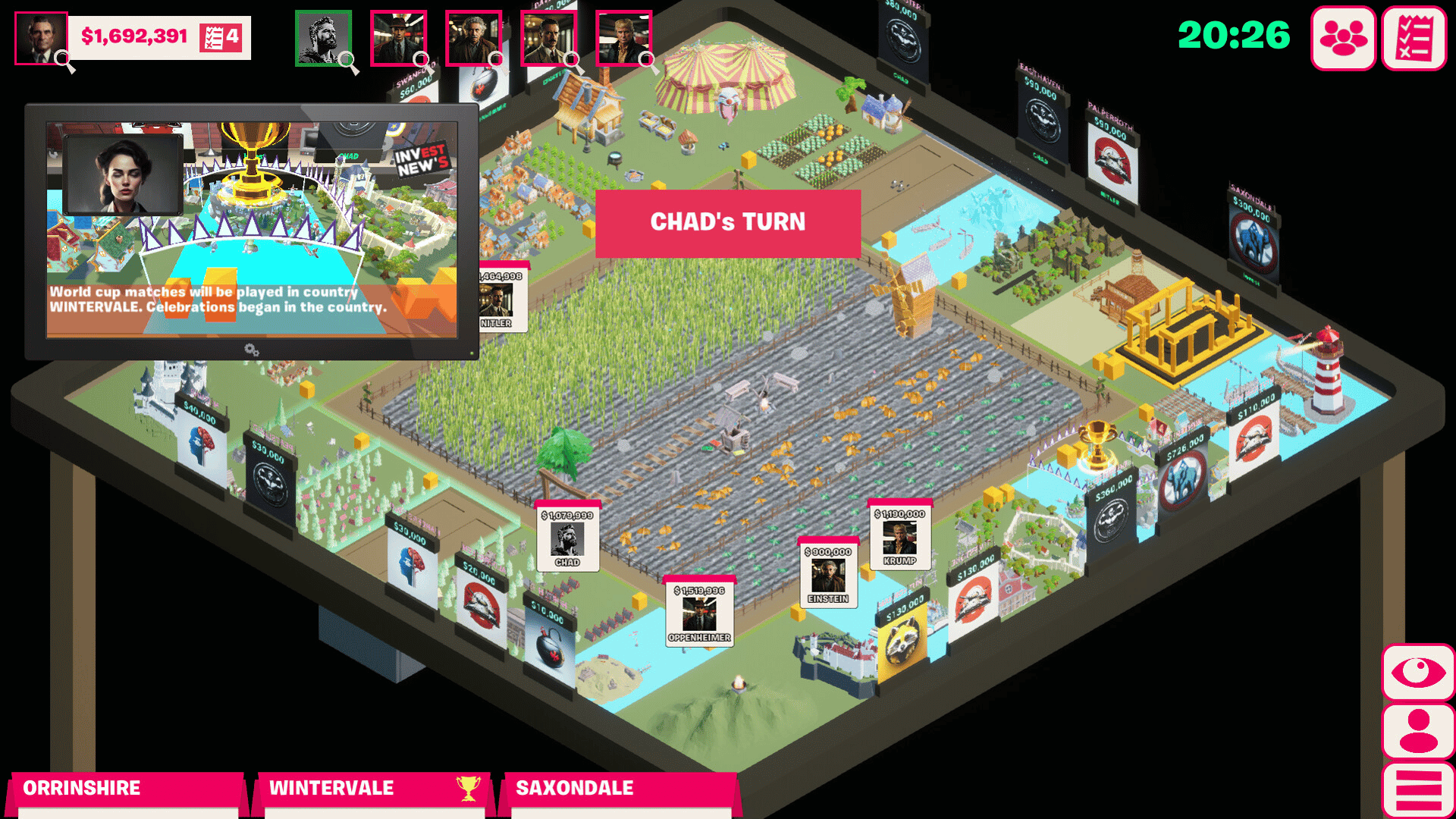 GET ALL COUNTRIES! Compete with your FRIENDS. Get Countries, build buildings, hotels on a colorful and live map. Establish your political party and strive to come to power. Be the POLITICAL PARTY that wins with the right policies. INVESTORMANIA, Construction, Politics and more...