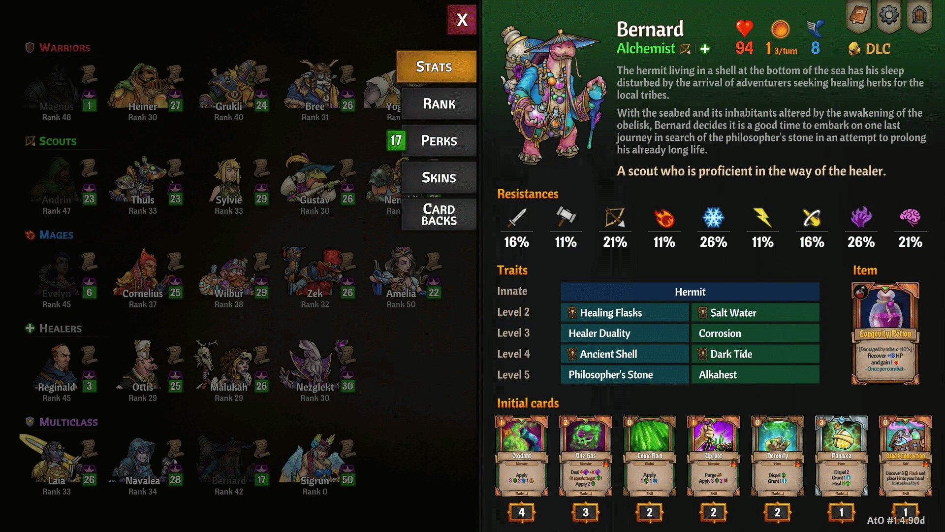 Bernard, the Alchemist is a Hero Pack that introduces the scout-healer multiclass to Across the Obelisk. Devise new party compositions and create advanced strategies thanks to Bernards unique class. Bernard is joined by a new pet, Inky, his faithful octopus friend.