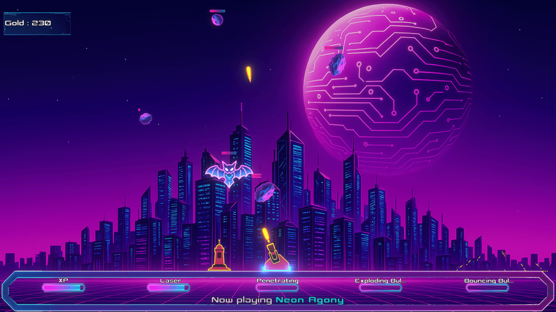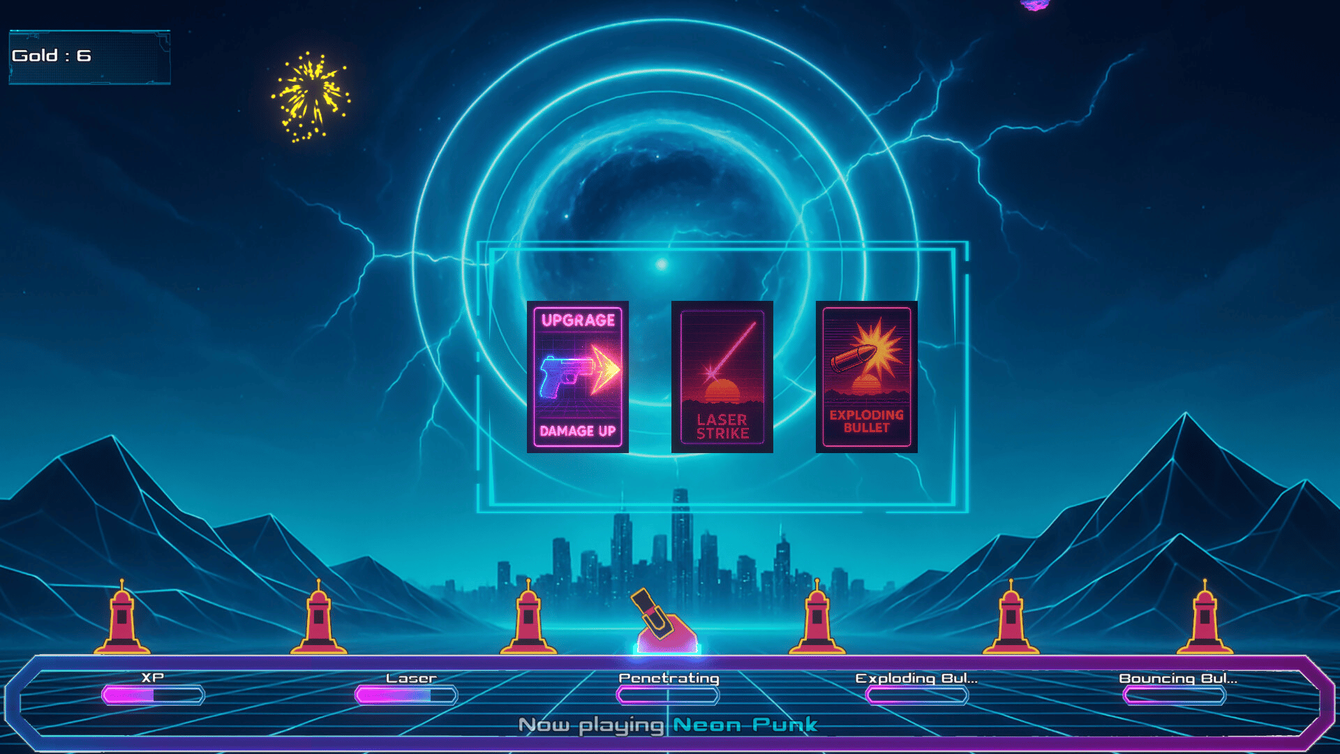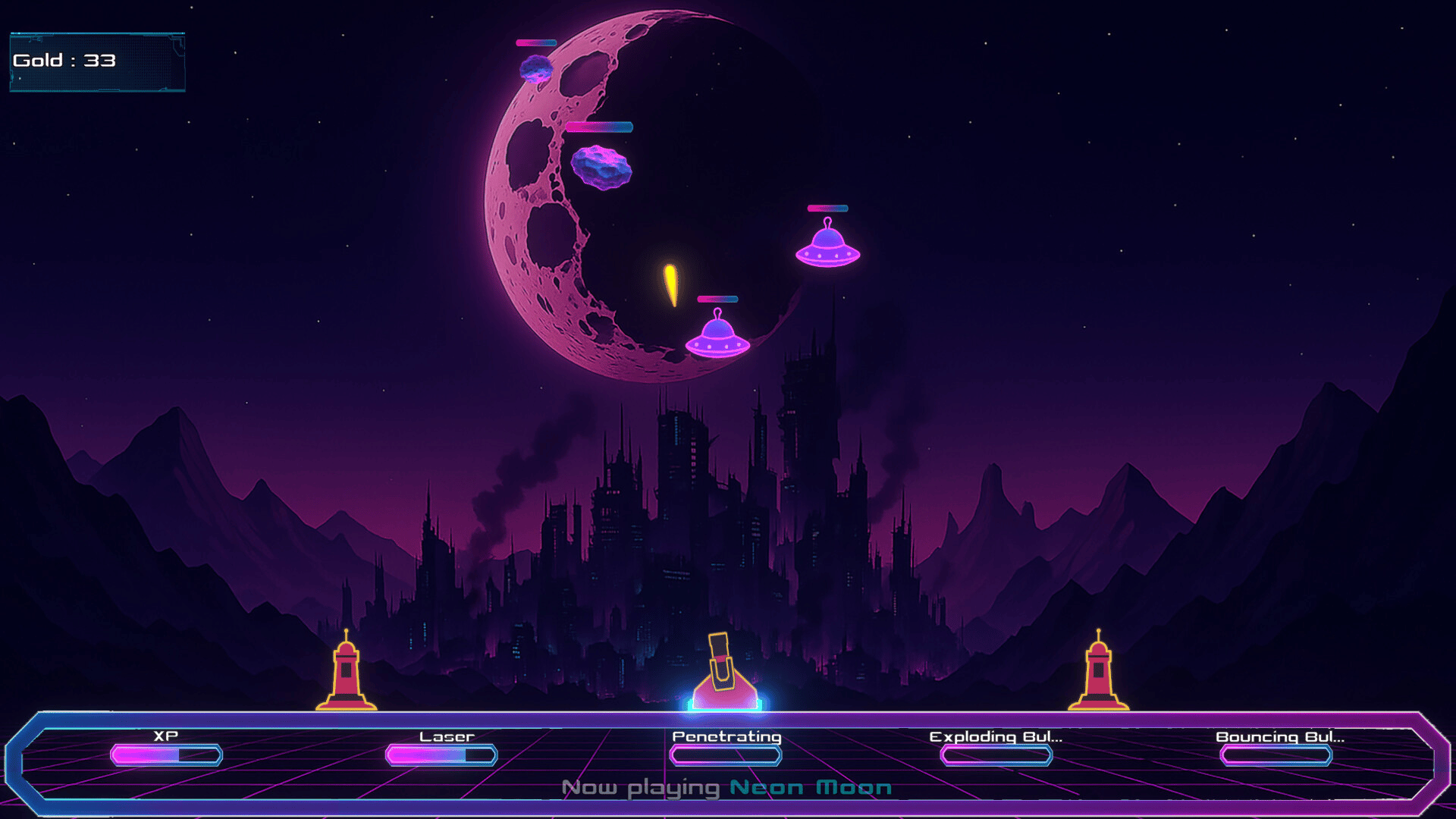 Protect your six towers against relentless waves of enemies in Command-Ω Omega, a rogue-like shooter tower defense game with a synthwave 80’s aesthetic and modern graphics. Level up, collect upgrades, and enhance your arsenal as you battle to survive and dominate the neon battlefield.
