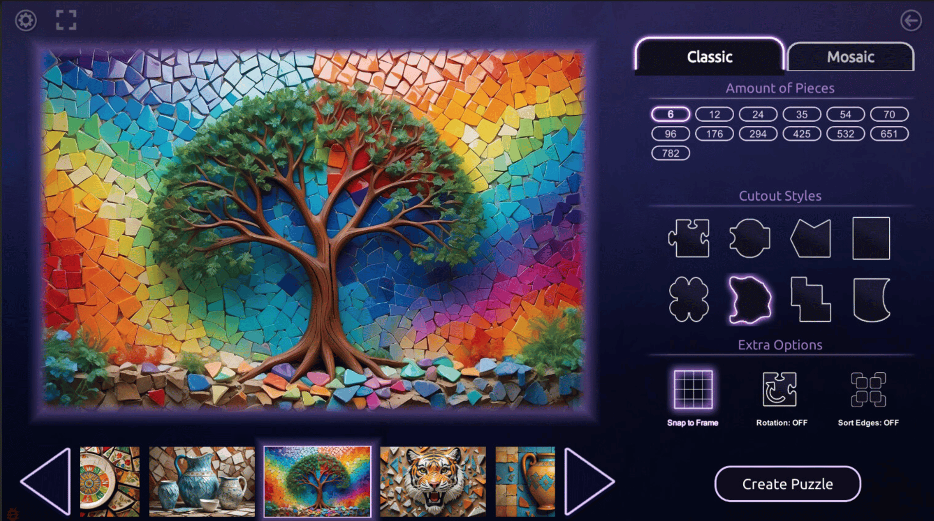 A huge collection of 75 puzzles uses broken ceramic shards to create vibrant and exciting mosaics that transform fragments into works of art.