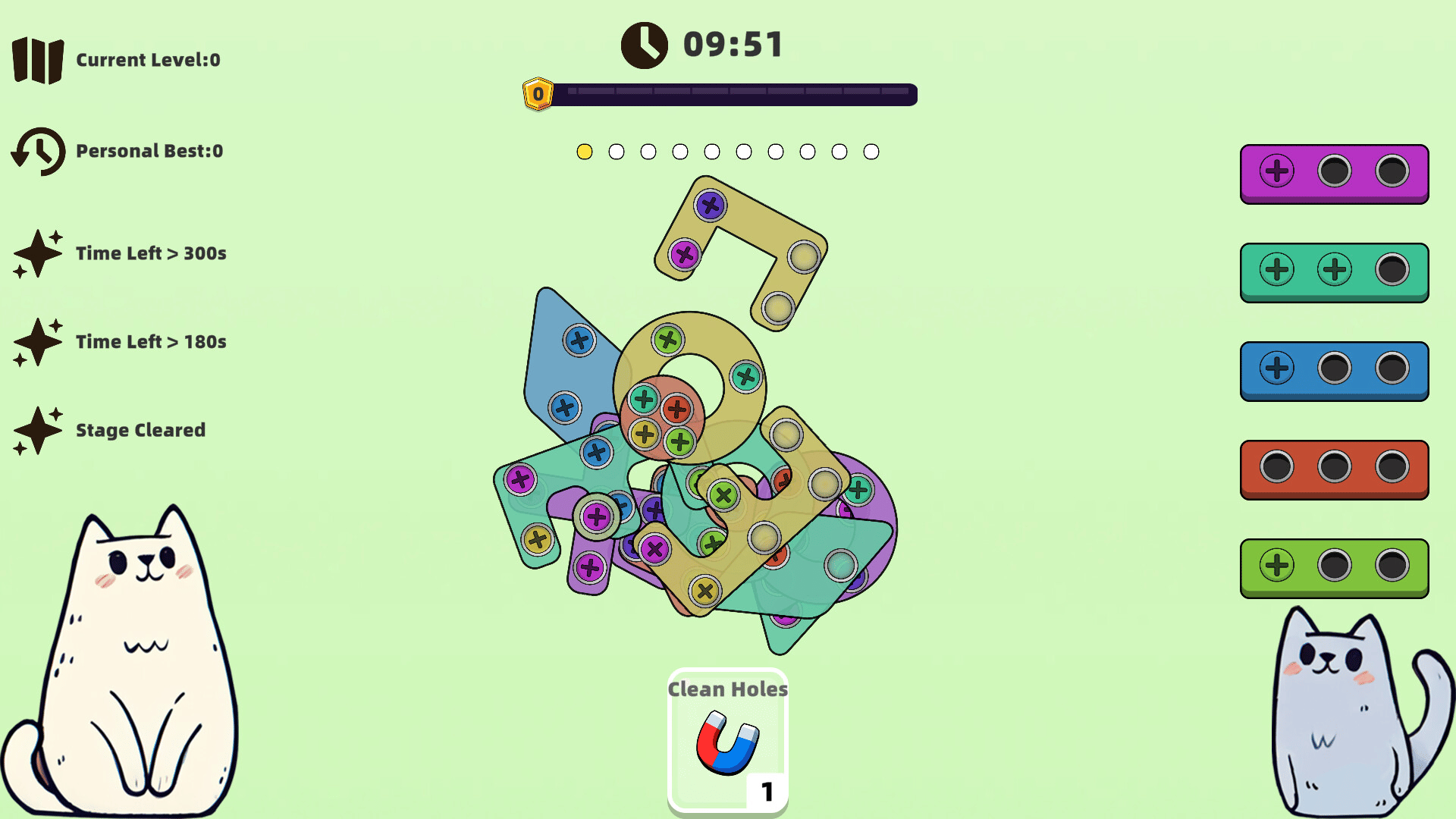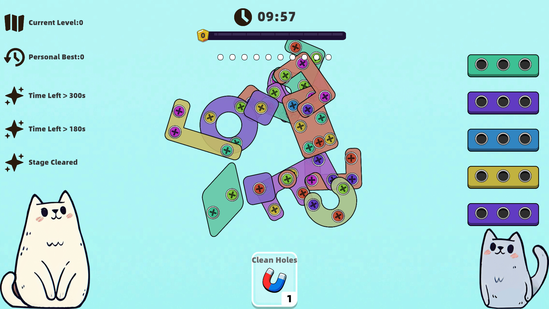A casual puzzle game where you simply remove colored screws from the board and place them into matching-color boxes.