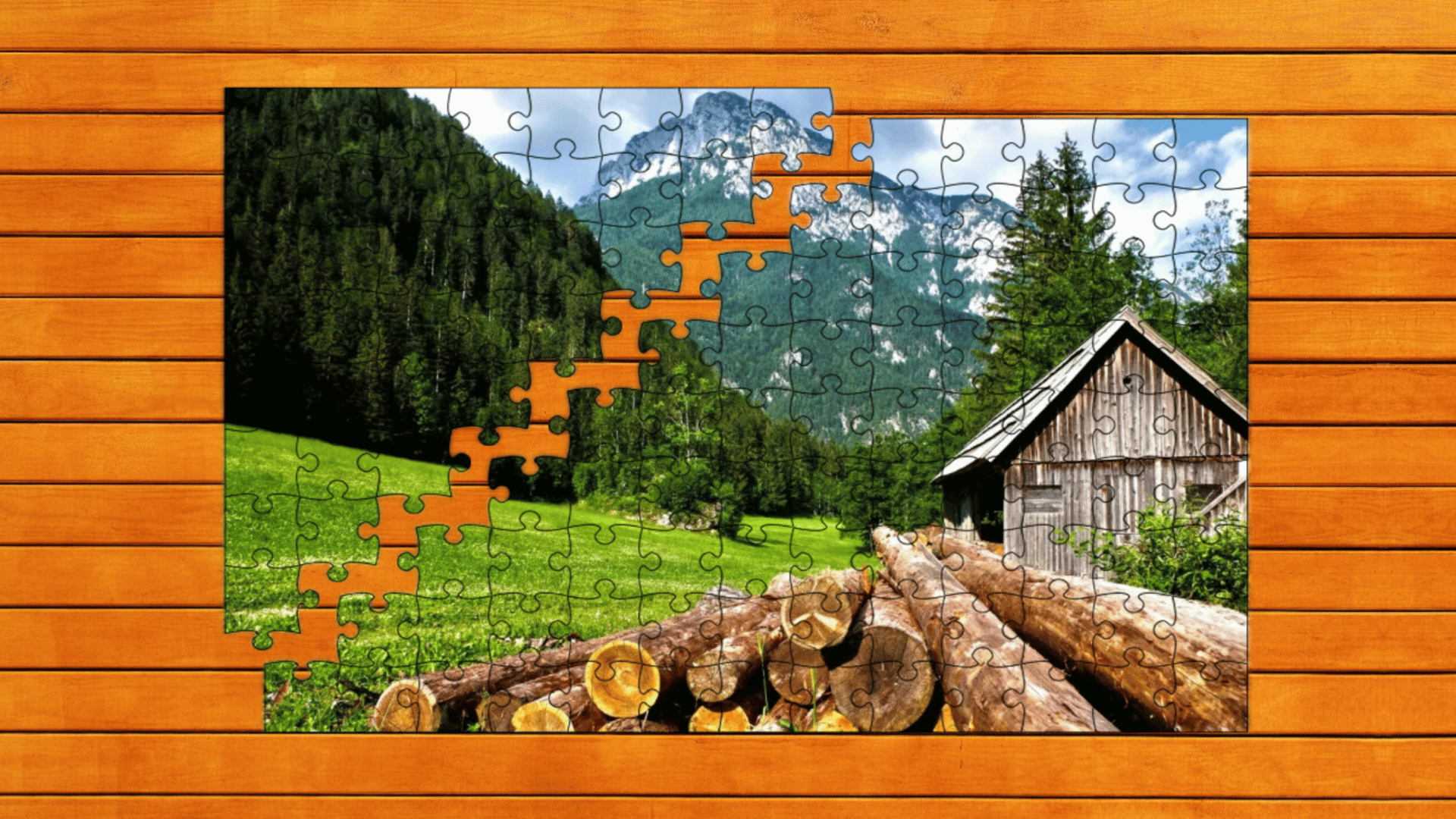In this DLC, explore 16 new puzzles in Timber Trails: Alpine Puzzle! Discover rustic cabins, towering pines, and snow-capped peaks in stunning alpine scenes.