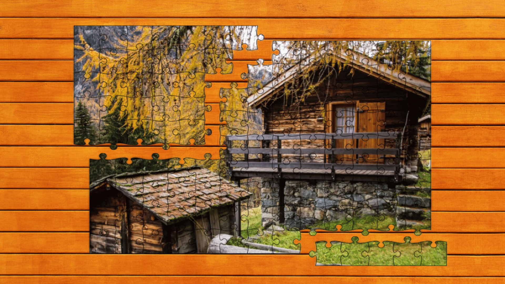 In this DLC, explore 16 new puzzles in Timber Trails: Alpine Puzzle! Discover rustic cabins, towering pines, and snow-capped peaks in stunning alpine scenes.