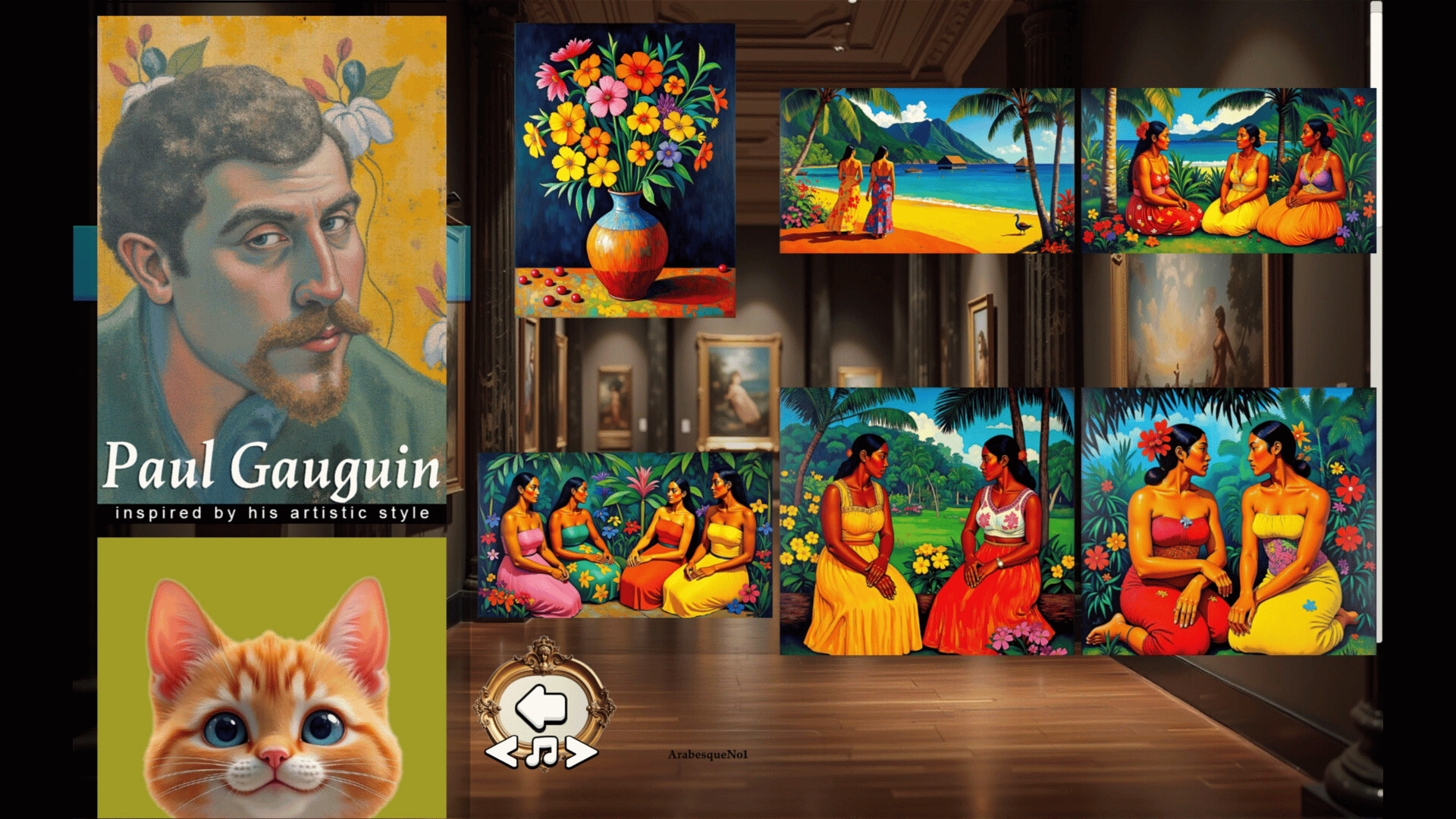Embark on an artistic journey through time and space! From the heights of Montmartre in Paris to the golden wheat fields of Arles, from the tropical paradise of Tahiti to the majestic Mount Sainte-Victoire in Provence, the Magical Cat will guide you through an enchanted world of art.