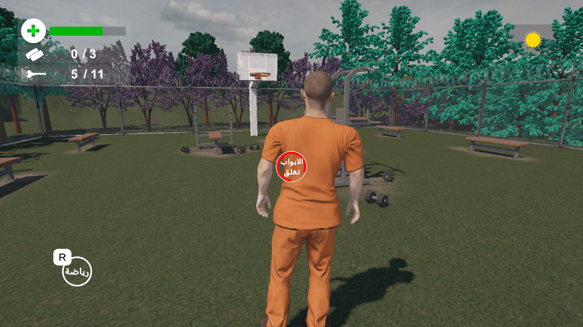 Escape from 11 prison doors. When the player wakes up from sleep, he goes to the gym to do some exercise, then goes to the restaurant to boost his health, then goes to the factory to work, there you must make keys so you can escape.