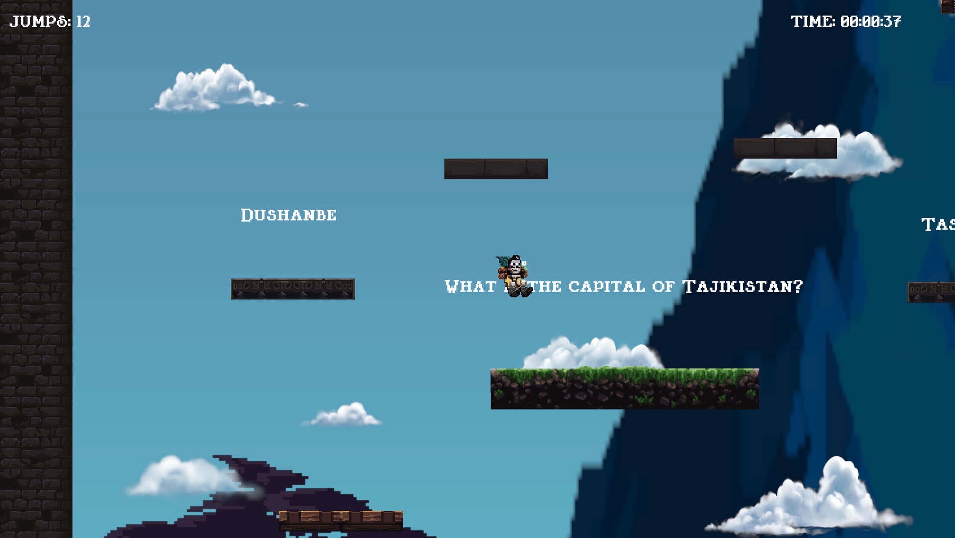 Climb a treacherous mountain one charged jump at a time while answering quick-fire trivia. Every correct choice creates a safe landing, every mistake is a fall. Reflex platforming meets brain-teasing quiz in this single-player challenge.