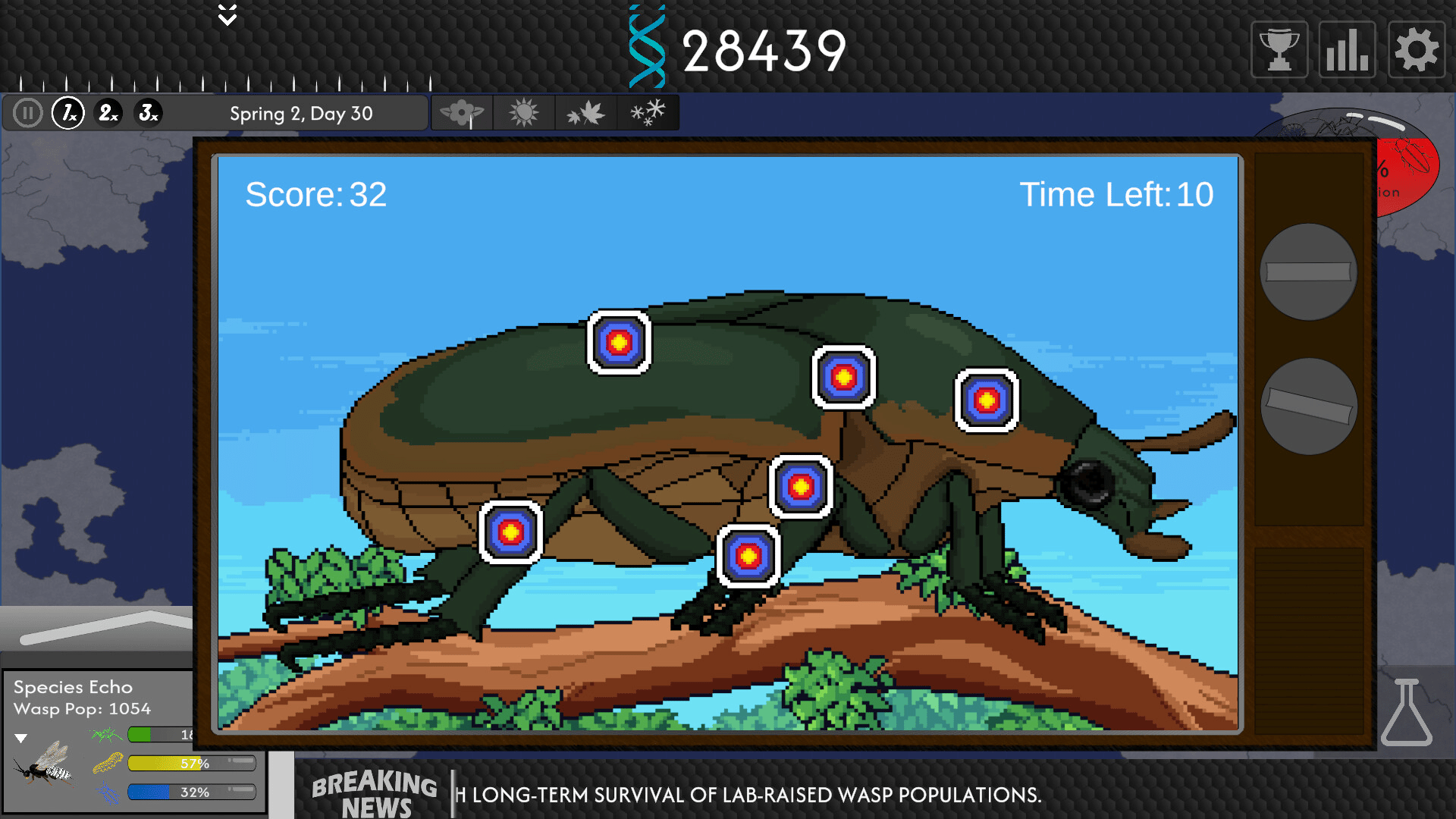 The Crawling Dead is a strategy simulation game where you take on the role of a lead scientist tasked with saving Stormveil National Park from ecological collapse. Swarms of invasive insects are devastating the park’s delicate ecosystems, and traditional methods of pest control have failed. Your solution? Genetically engineered parasitoid wasps. Harmless to humans, these beneficial wasps are killers of pest insects and utilize a variety of creepy strategies to manipulate and kill their hosts - turning them into The Crawling Dead!