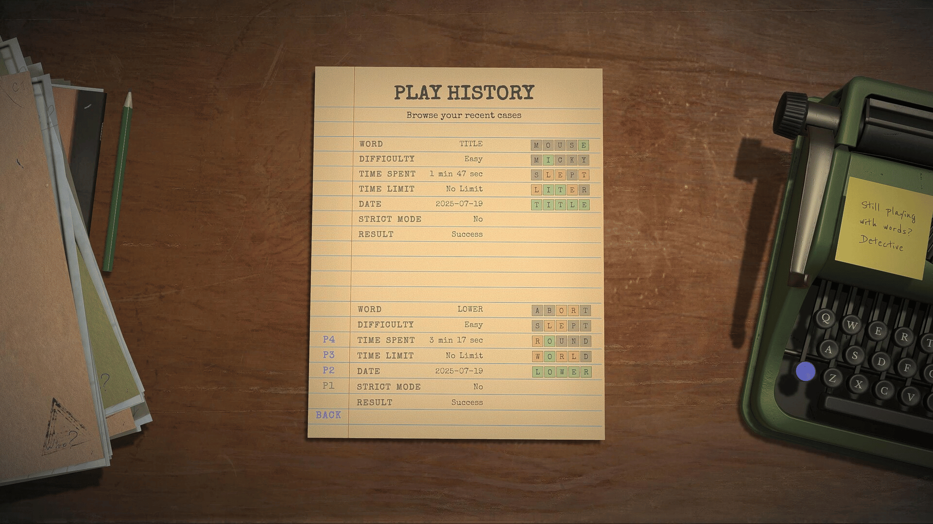 As a private detective, you’ll crack word clues left by a mysterious informant, gather evidence, and uncover the truth hidden in the shadows.