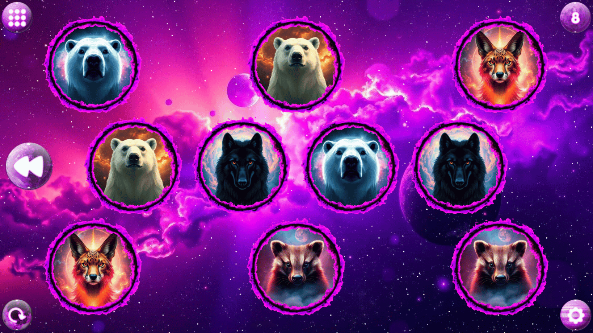 Cute, relaxing memory game where you match pairs of cool predators in space