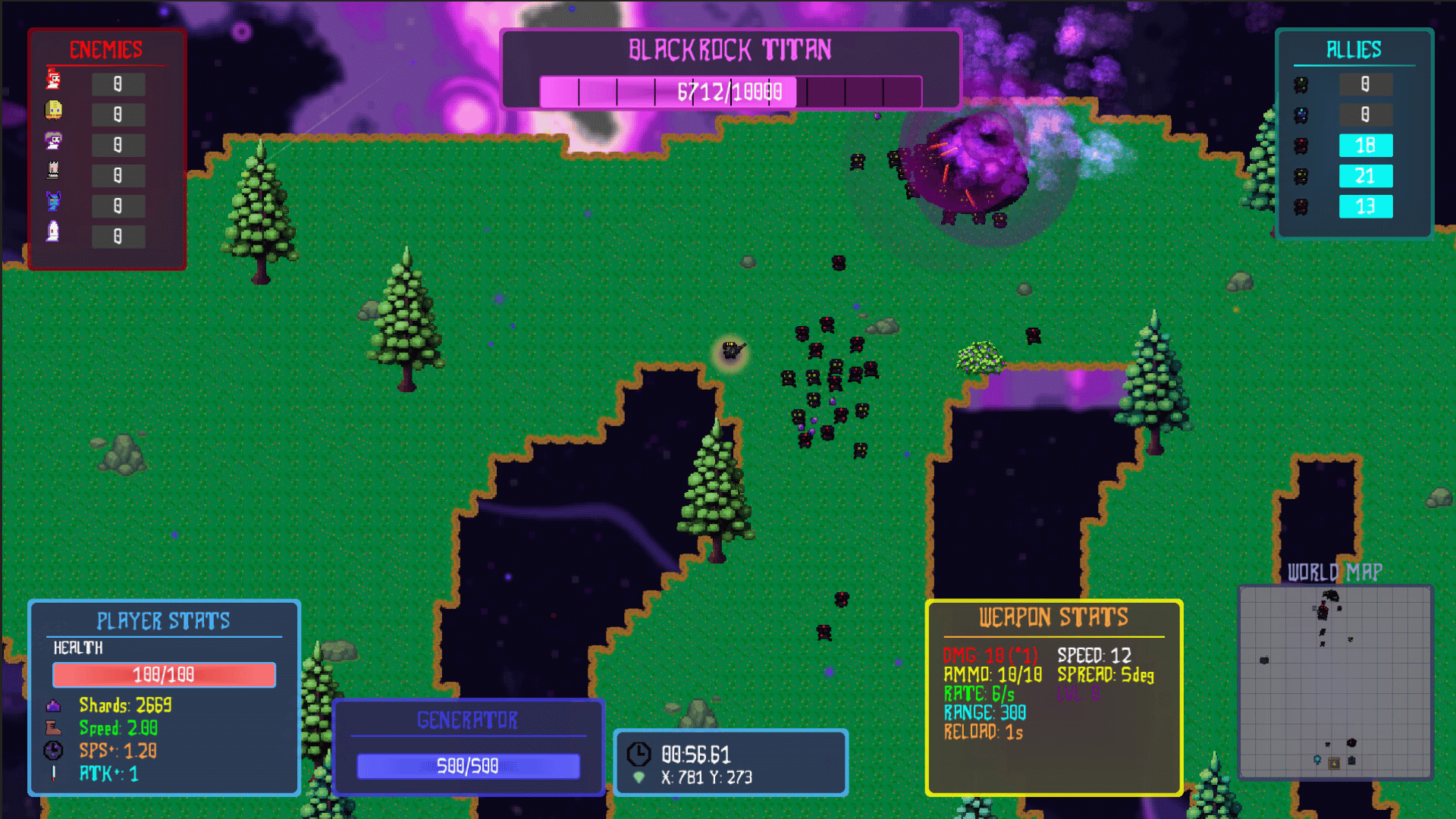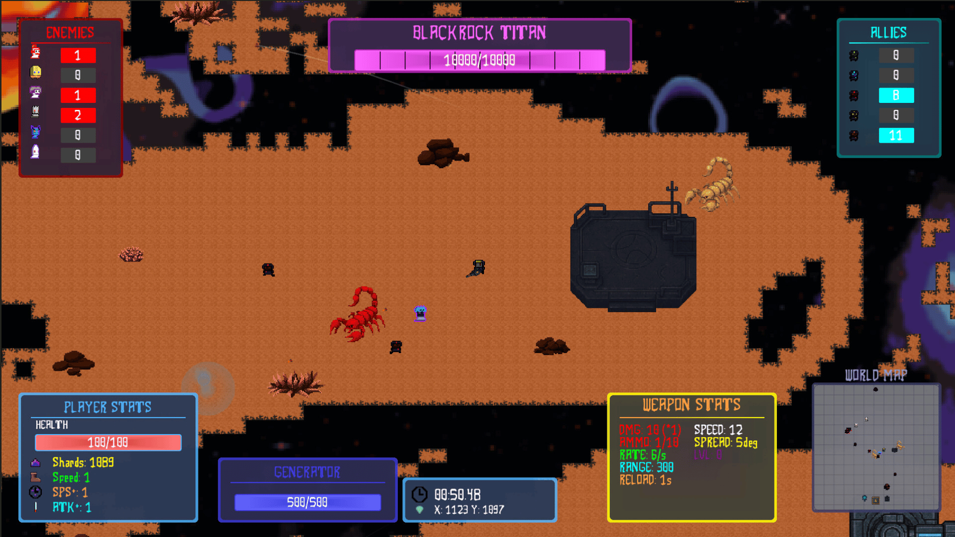 Command the BCF against sentient Blackrocks in this tactical top-down shooter base defense. Deploy Bravelings, fight Glimmergrubs, and destroy the Blackrock before it overwhelms everything.