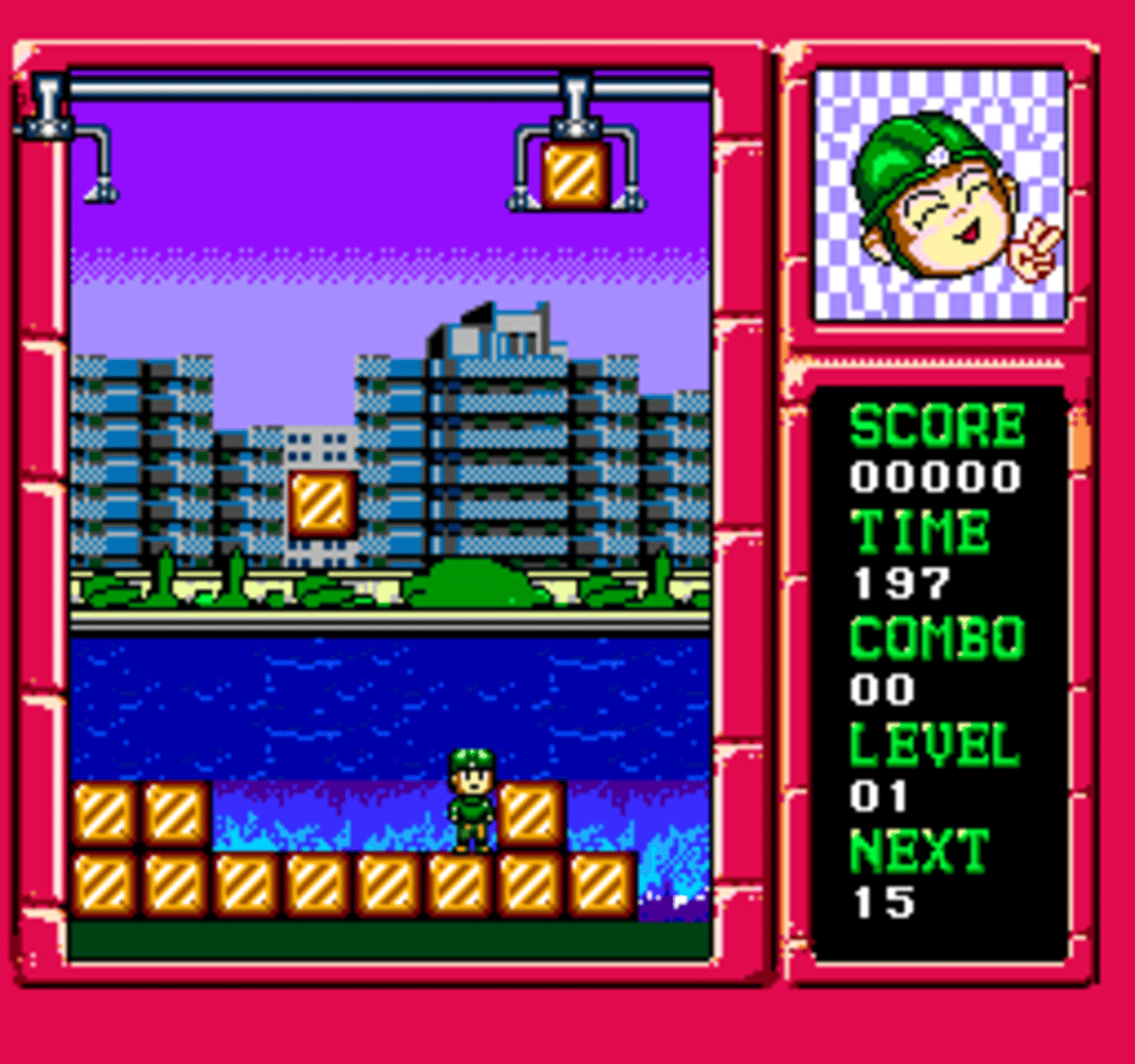 Danger Zone is an action/puzzle game developed by JungleTac for their generic multi-game systems, including plug and plays and handhelds. It pits the player against a machine which throws a never-ending barrage of blocks. These blocks must be arranged to form lines, while avoiding being hit by them. The game was originally developed for consoles using the VT03 enhanced single-chip Famiclone. The original revision of this version of the game features a title screen, which reads Zone Danger. This specific revision of the game is known to have been included on the Vs Maxx 17 in 1 plug and play and the two-player capable Silverlit 35 in 1 Super Twins plug and play console, the latter having a copyright year of 2005 printed on its battery cover.