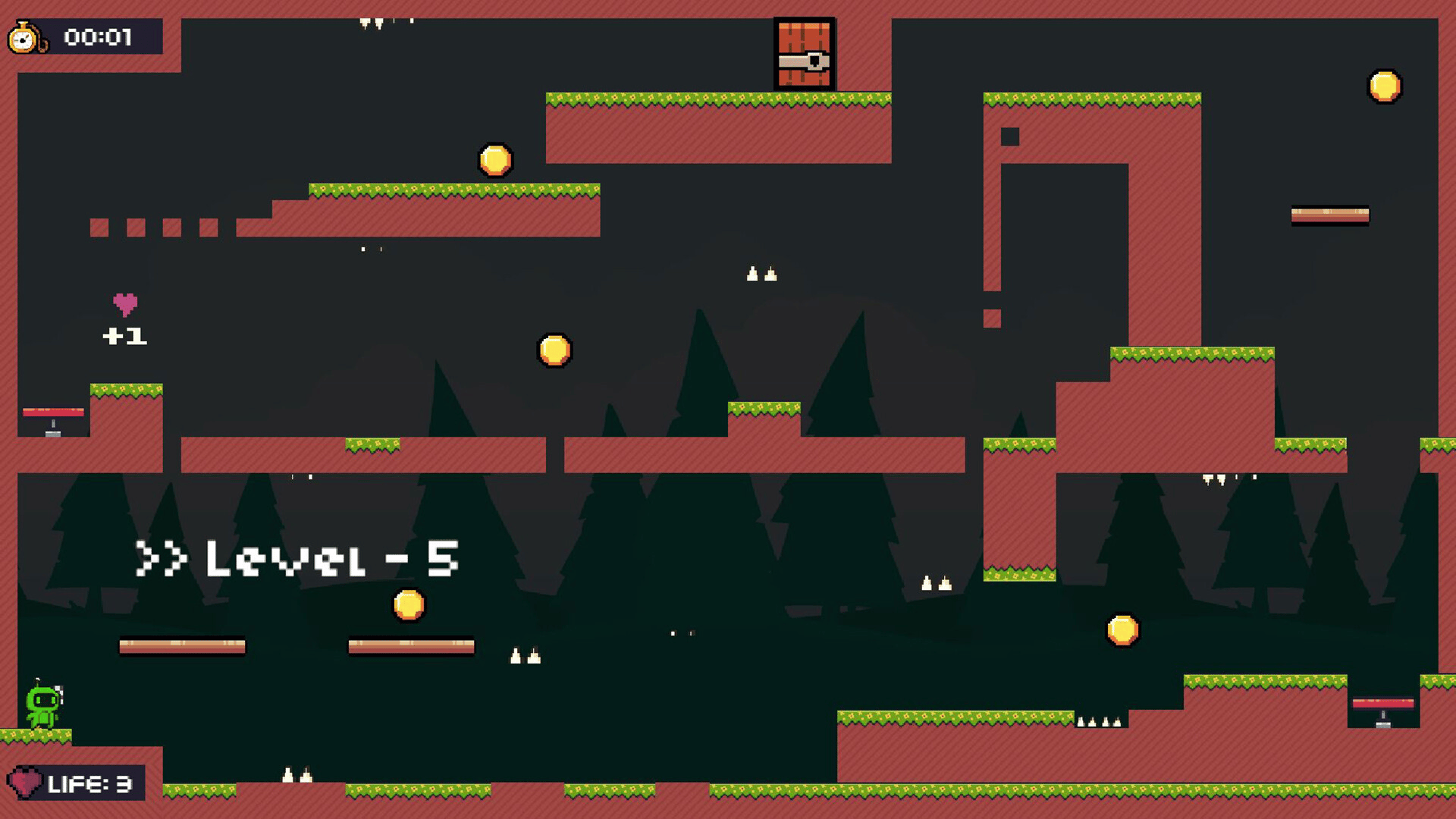 Collect the Gems. Take the key and open the door. Watch out for Spikes while doing so.
