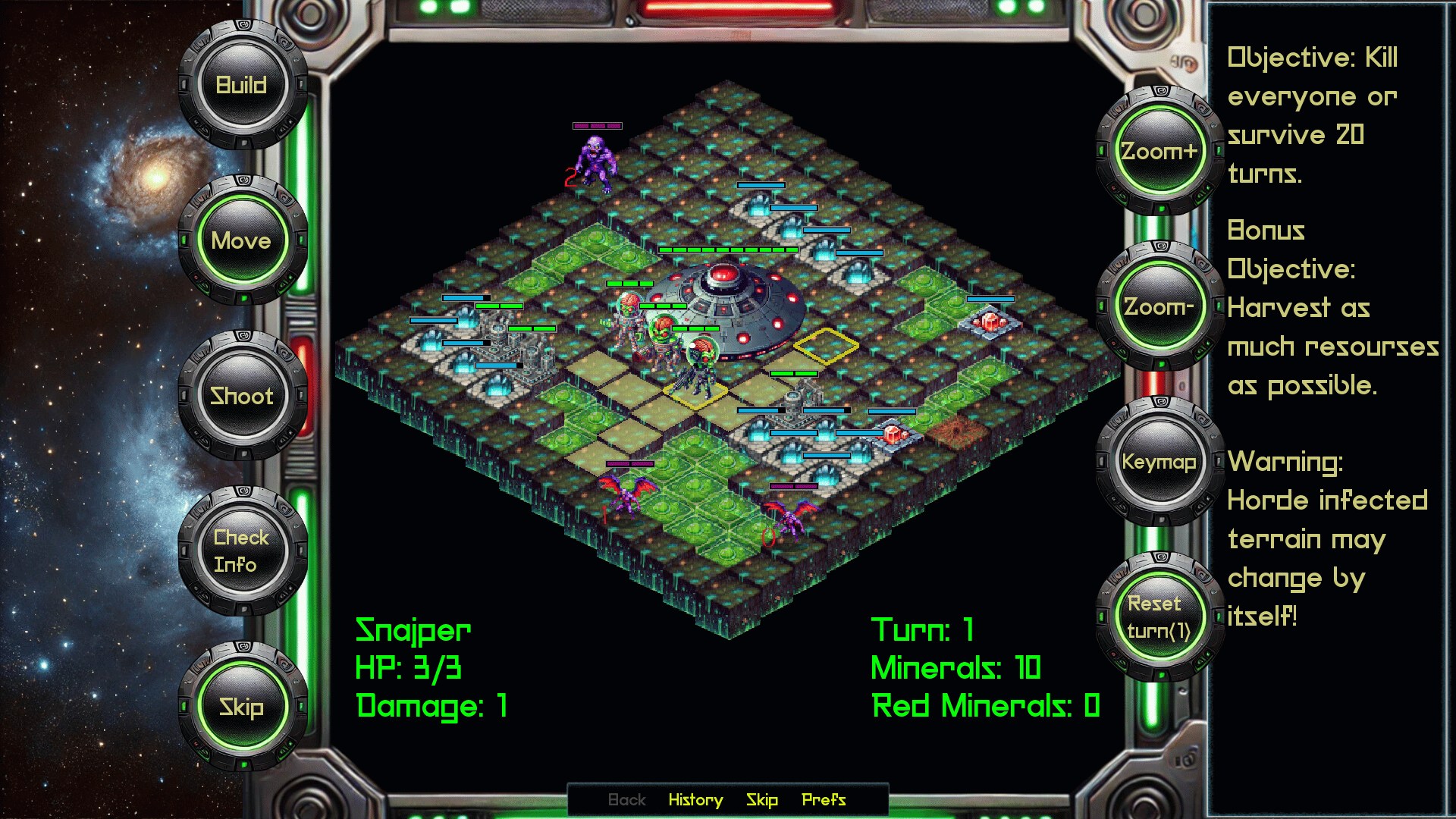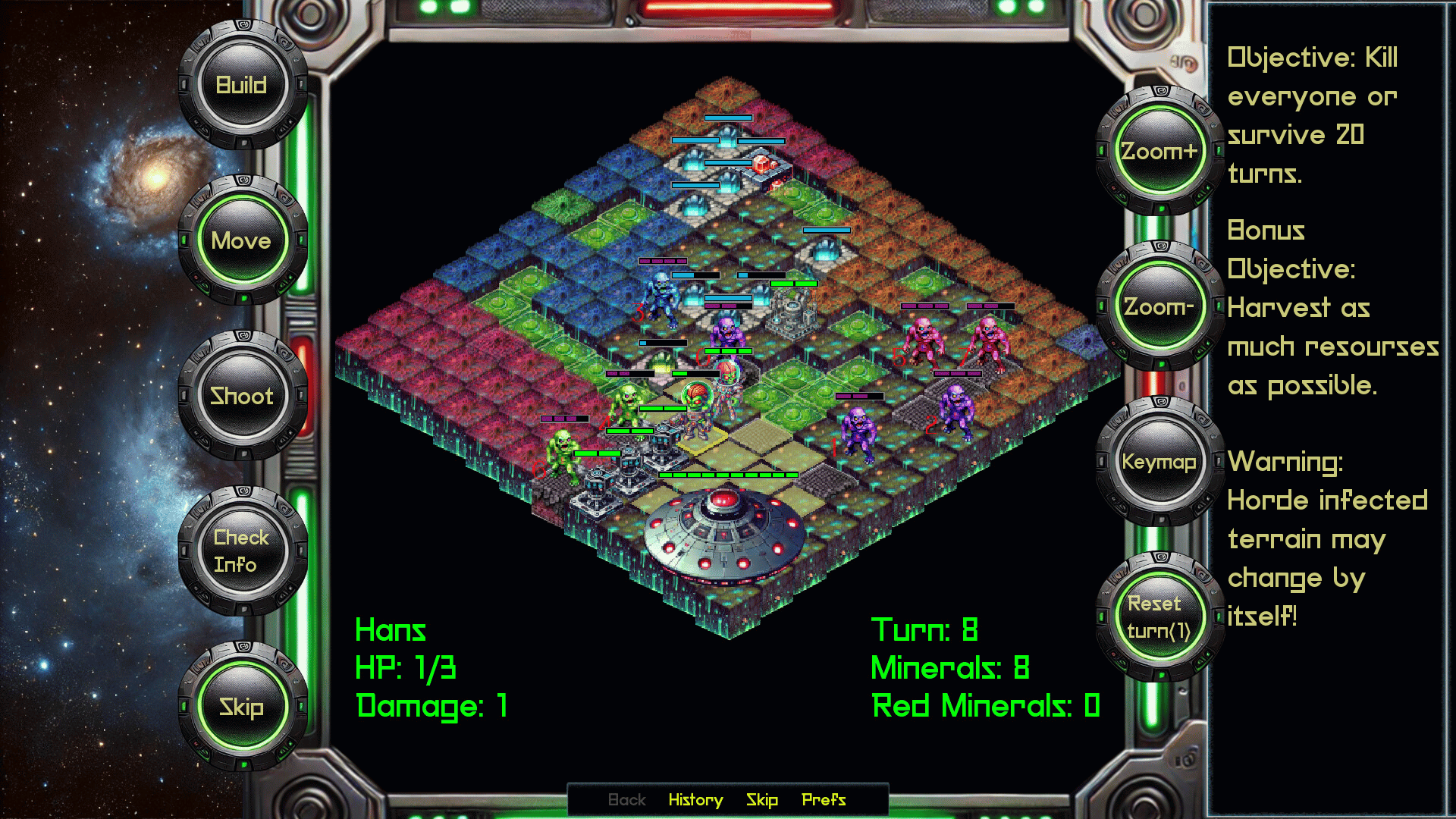 Deploy. Gather intel. Survive - or eliminate everyone. Each mission in this TBS game drops you into randomly generated enemy territory. Your job? Land, scout, extract resources, and analyze enemy behavior - all while staying alive for 20 turns or ensuring the opposition doesn’t.