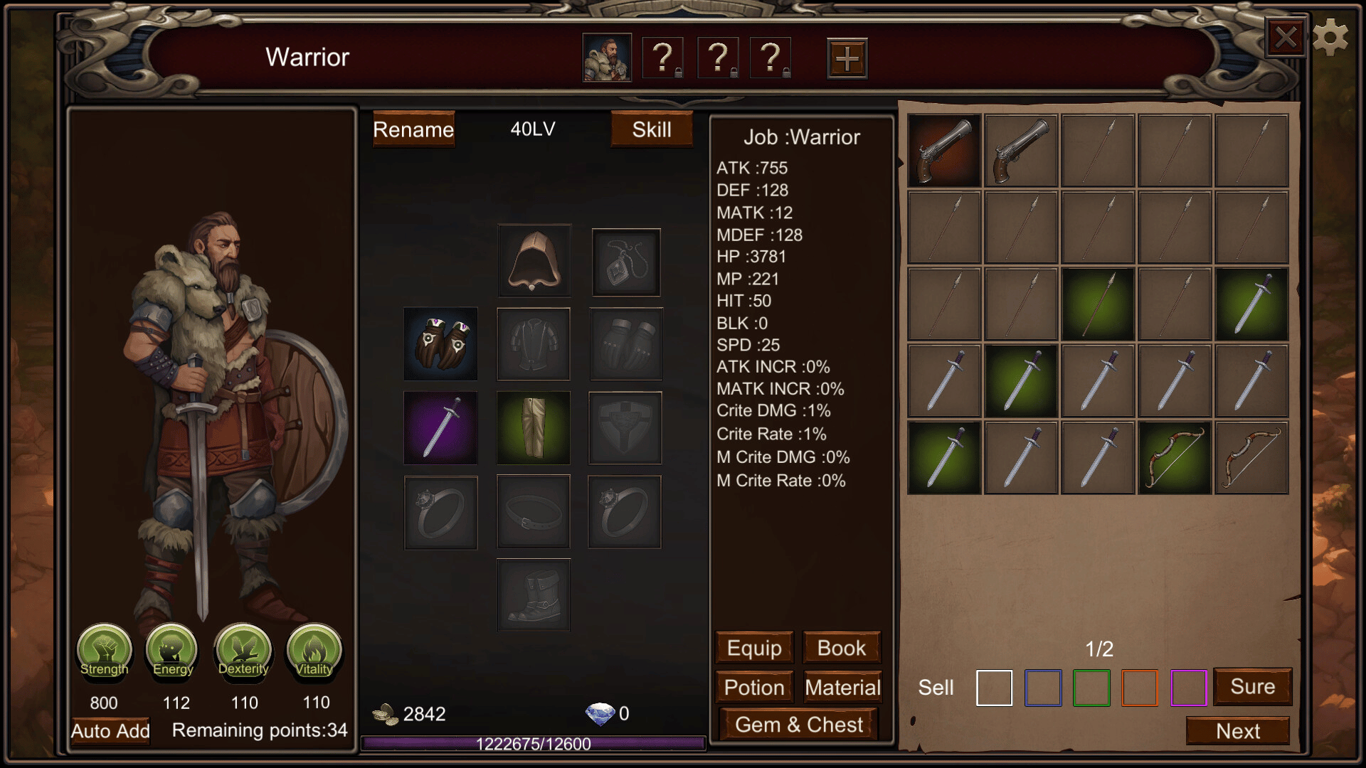 This is a 2D idle game. You can choose 8 professions to team up and fight monsters and brush equipment. By selecting different attributes for different professions and adding points, the combat effectiveness of the character can be significantly improved.