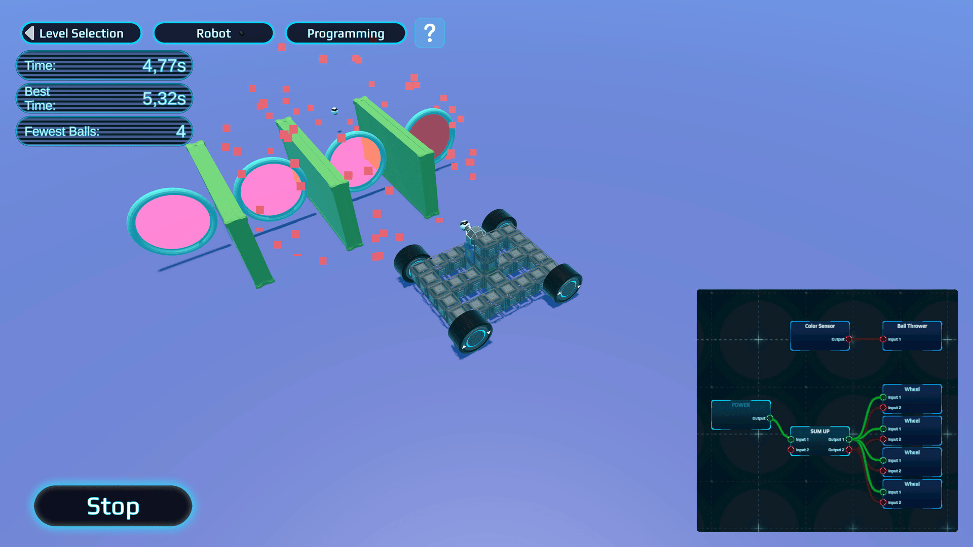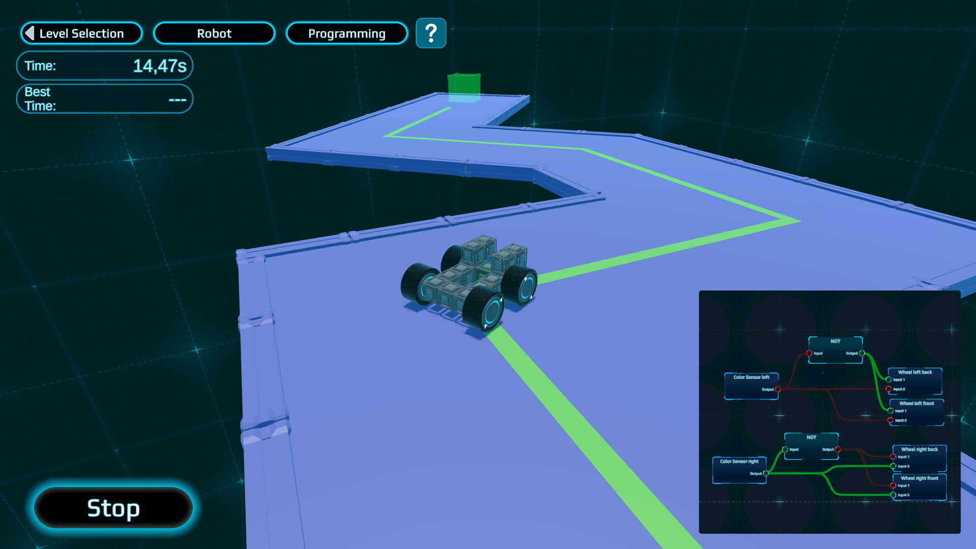 Solve logic puzzles and obstacle courses in this robot simulation game! Immerse yourself in the exciting world of robotics and programming! Create your own robot, connect logic blocks and teach it to solve challenging tasks!