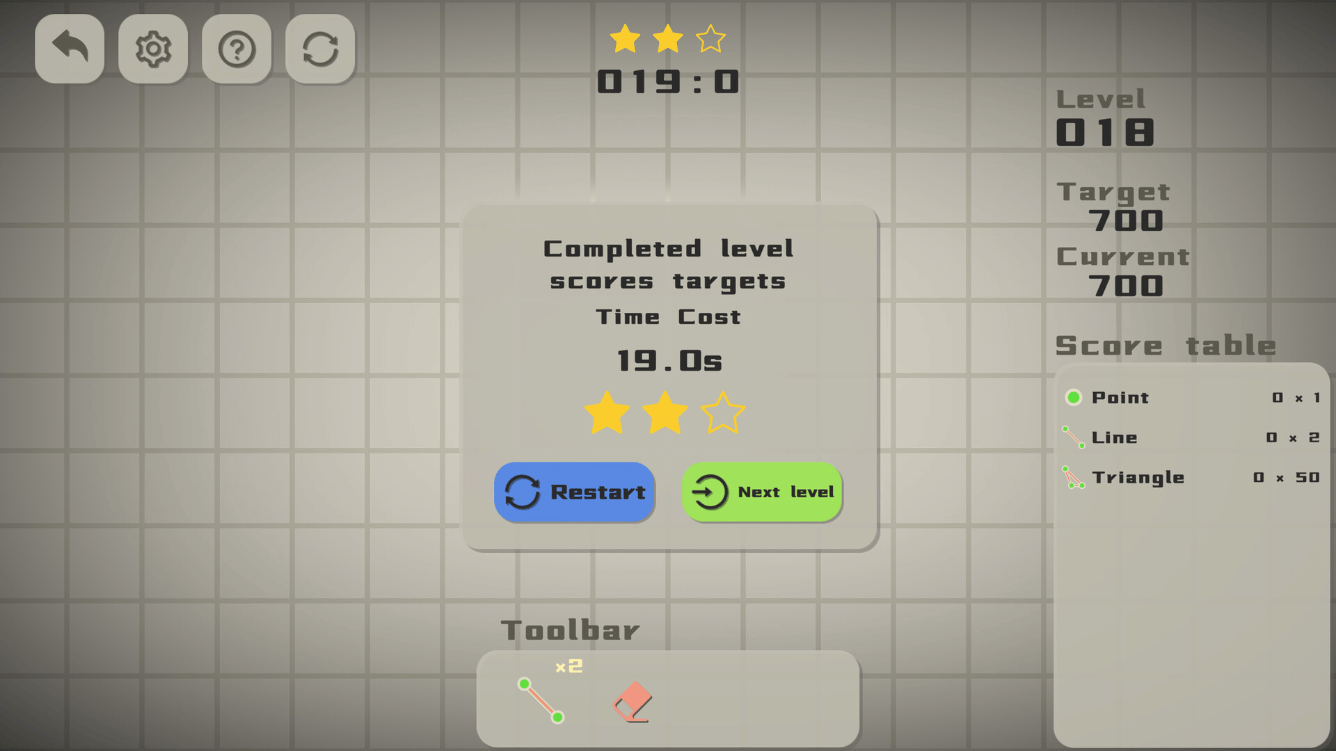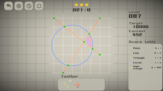Geometry Factory is a minimalist puzzle game. Use basic geometric elements such as points, lines, circles, etc. to build infinite possible graphics on the panel, complete the score goals in the exquisite level puzzles, and feel the beauty of geometry and mathematics.