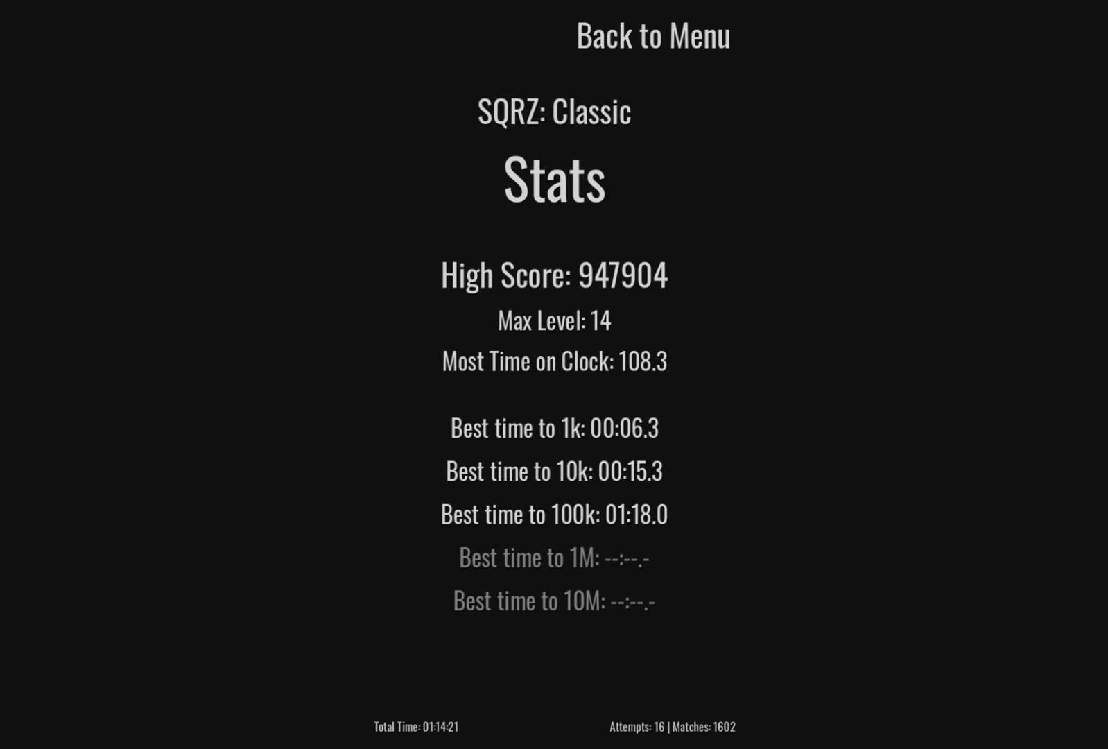 A fast-paced tile-based match-three game. Tracks scores, splits, and has different game modes to choose from.