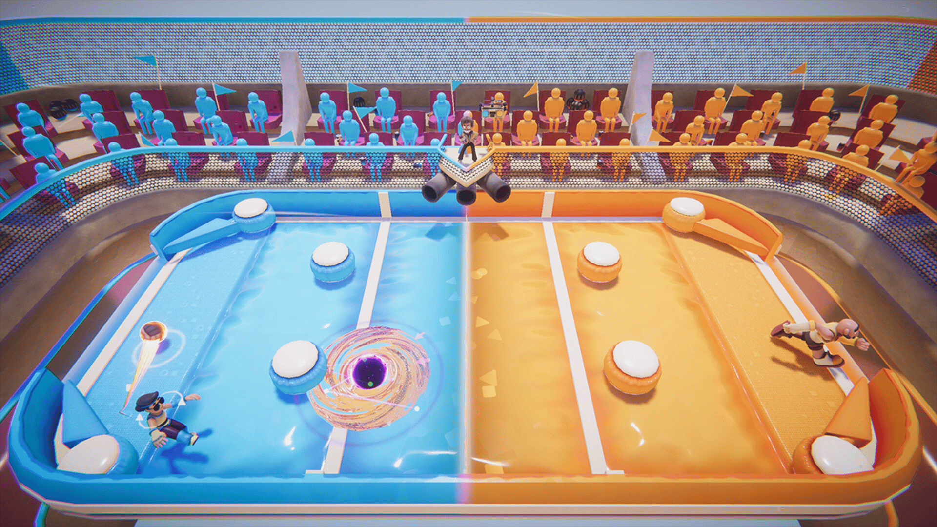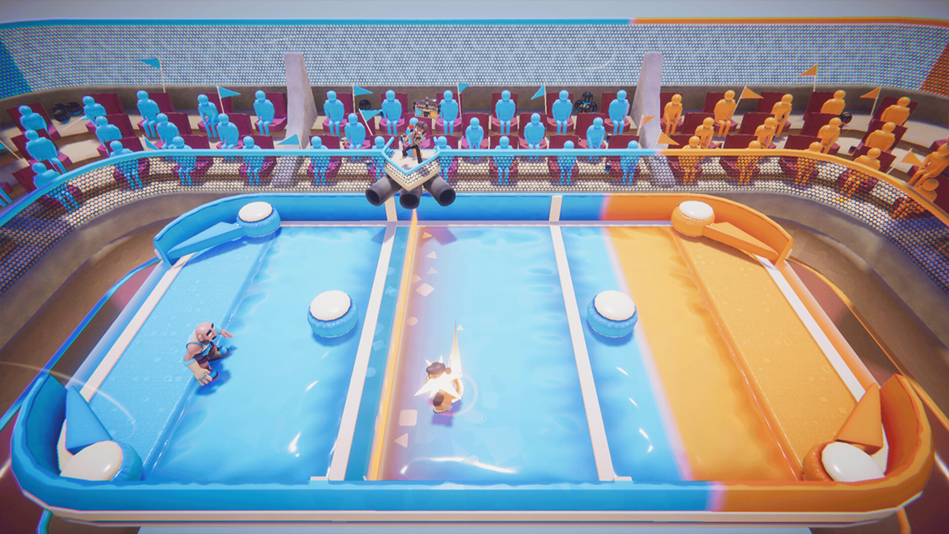 Duel your friends in a life-sized pinball arena in a high-tension one-on-one sport! Parry a constantly accelerating ball and launch it into your opponent’s goal to win the match. But watch out — the commentator might have a trick or two to spice things up... Good luck!