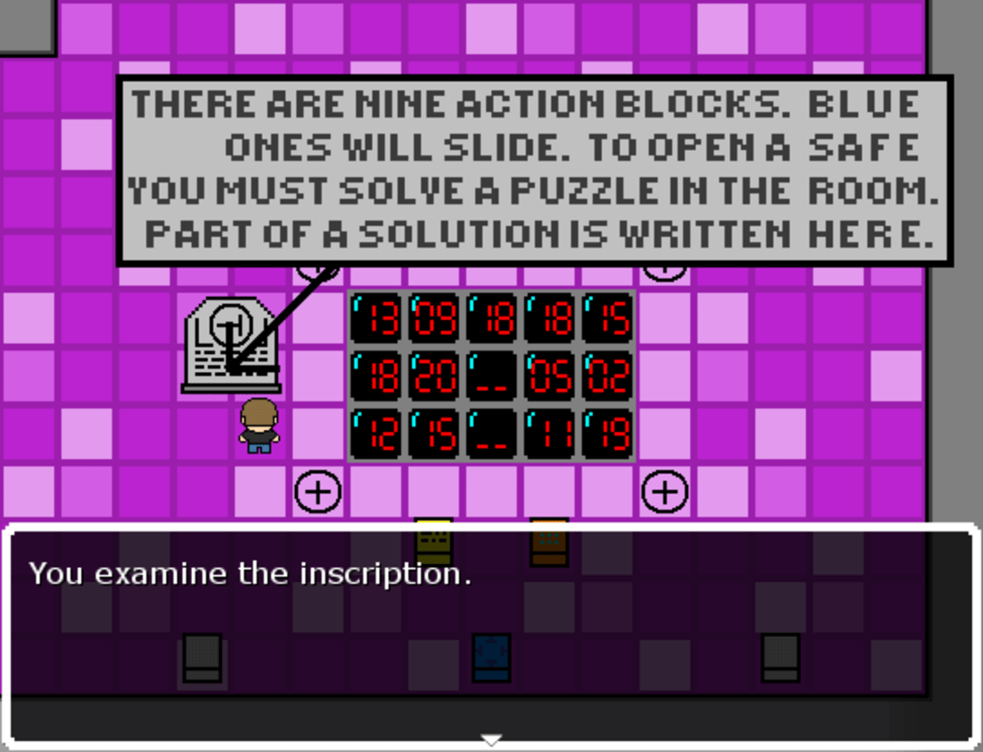 Knight's Dungeon is a puzzle game where you must solve word, number, color, push-block, and music puzzles to advance through the dungeon. You use an in-game journal to automatically record information as you find it. Also features a handful of expansive side-games separate from the original campaign, such as a hilltop mansion mystery or an ocean adventure complete with a health and game-over system.