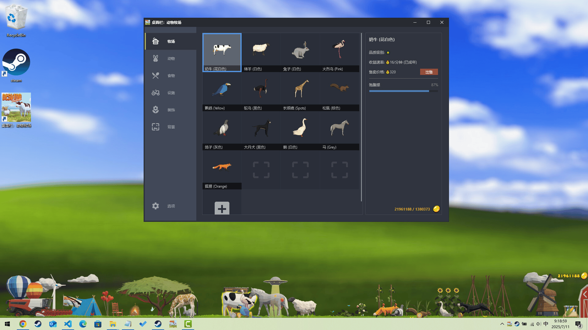 A Low Poly stylized idle-pasture simulator designed to sit at the bottom of your screen allowing you to work on other tasks while caring for your pasture and animals!