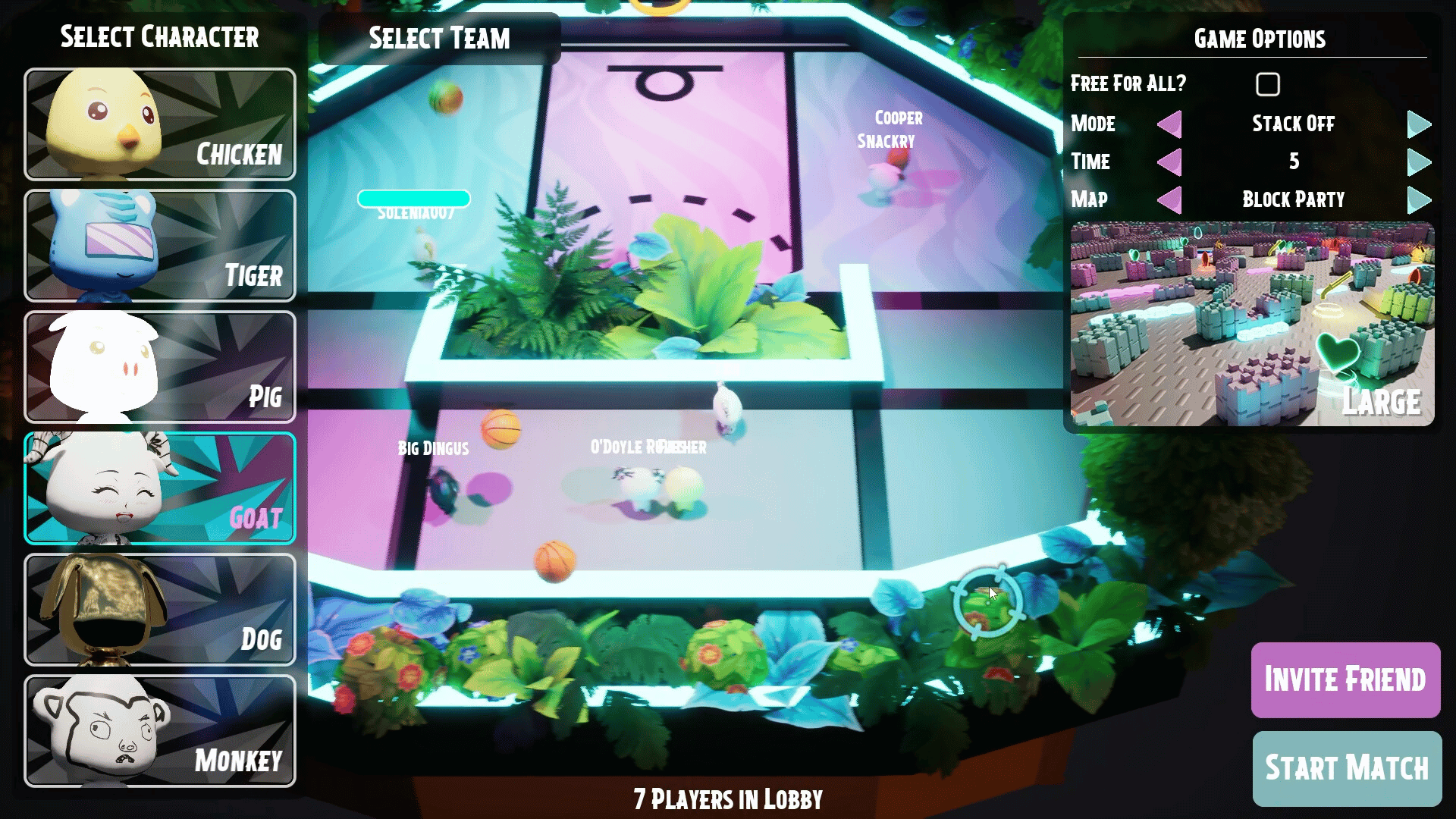 Chaotic third-person multiplayer shooter where adorable animals battle in TDM, FFA, Capture the Egg, Stack Off, Gun Soccer, and Basketball, or fight off waves of zombies in single-player mode.
