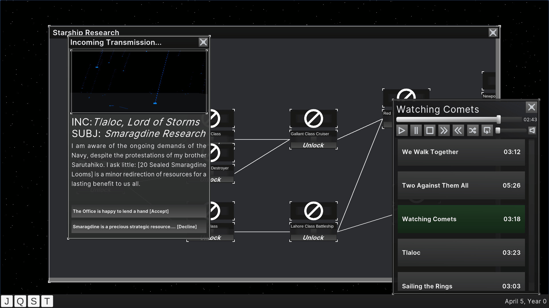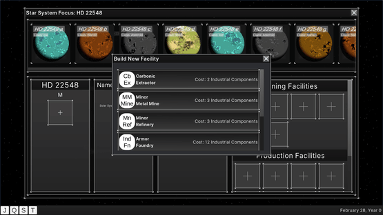 Take the reins of the newly founded Office of Interstellar Production, annex newly discovered star systems, mine resources and refine quality components to build mighty warships to deliver to the unceasing needs of the Navy. A chill sandbox resource management game.