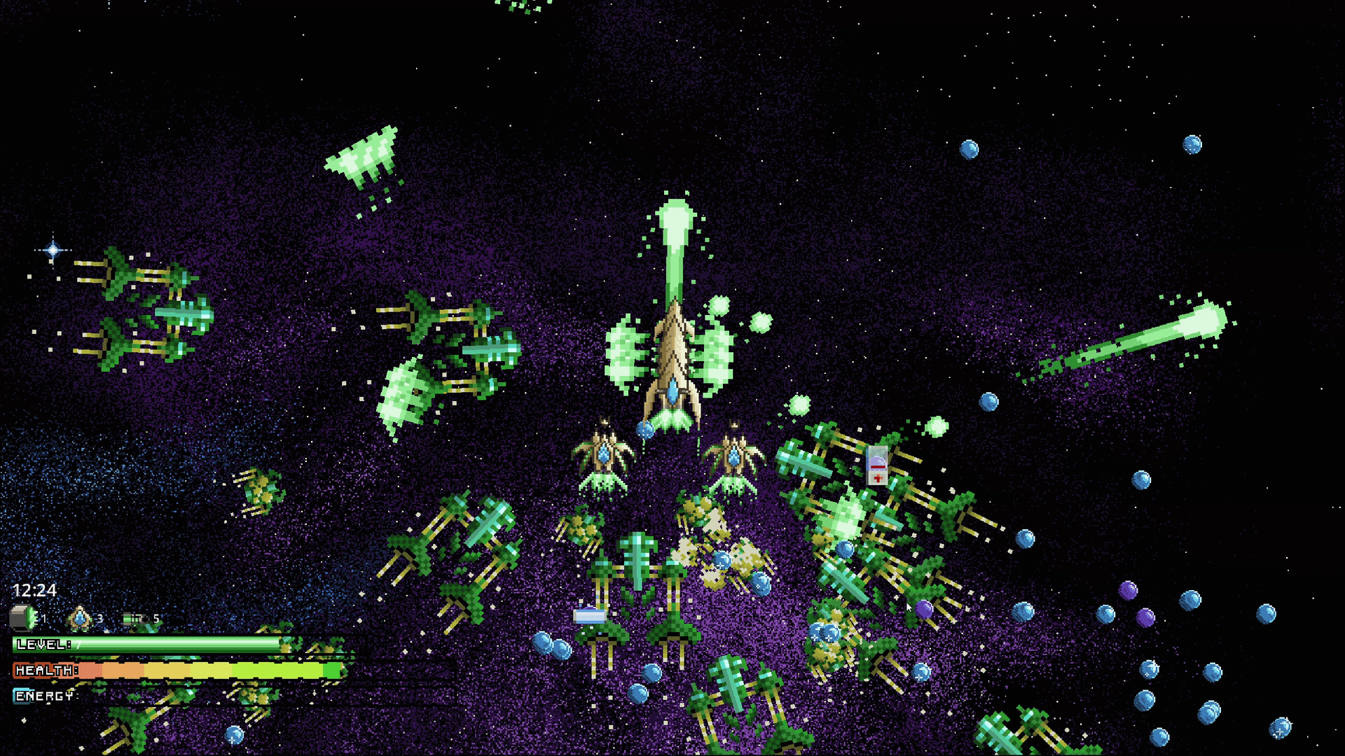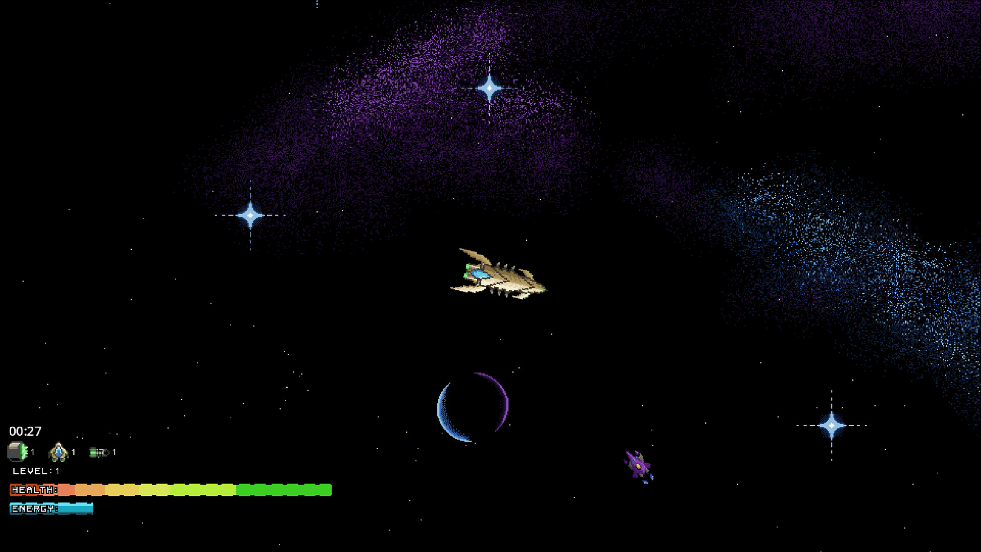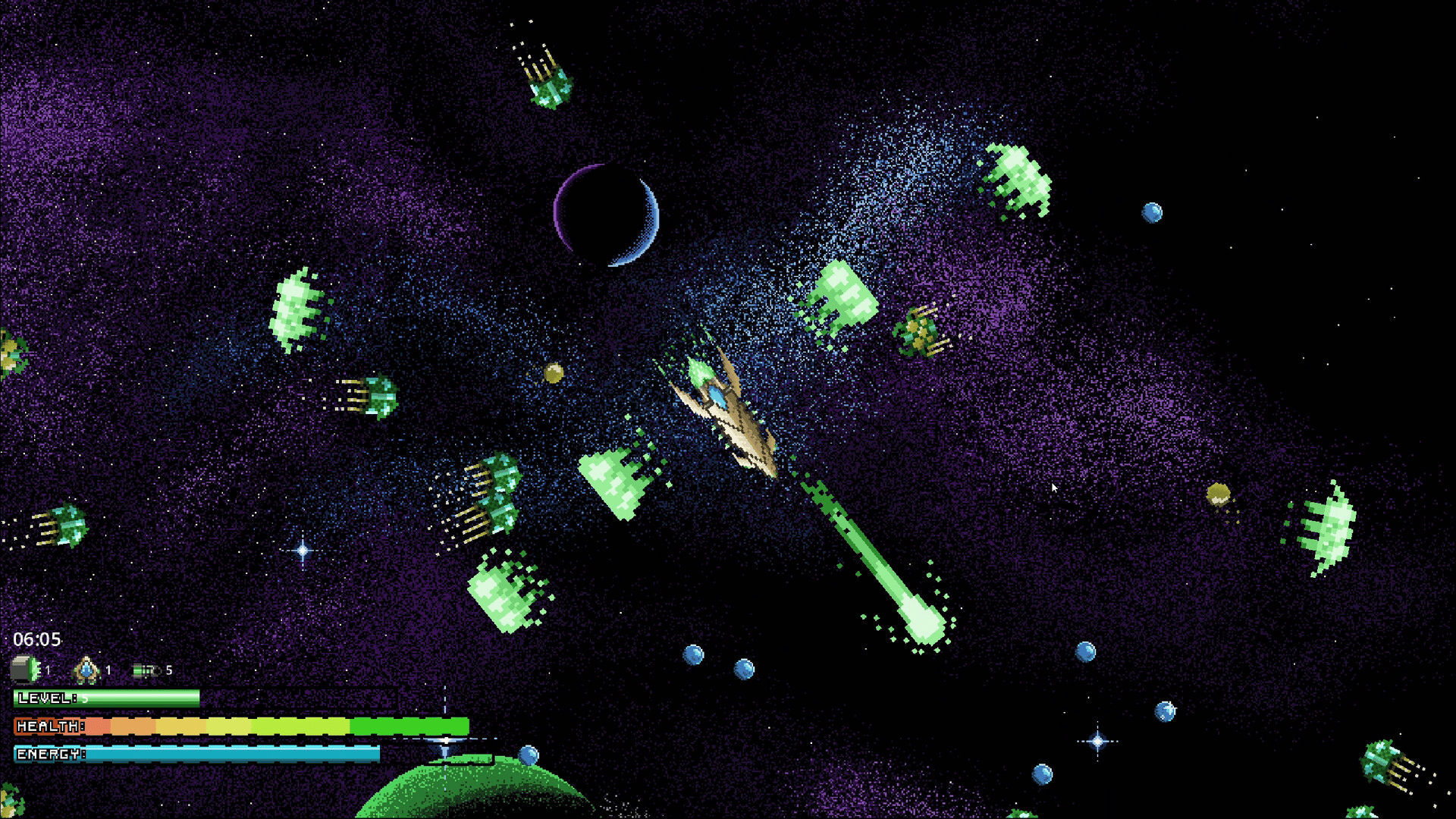 Cosmolon is a sci-fi spaceship shooter inspired by classic arcade and MS-DOS games. You control a ship that can boost around, level up, and destroy wave upon wave of enemy ships with beautiful pixel art plasma bolts and explosions. Nab fancy power-ups and fend off unique enemies. Can you survive?