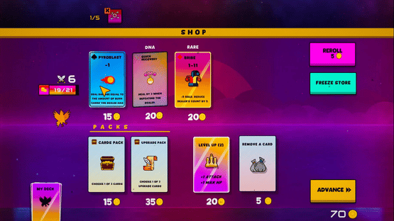 Overdrawn is a roguelike deckbuilder that twists blackjack into a tactical battle. Cards in your hand have hidden values and are revealed when played. Win the hand and deal some damage! This isn’t just luck, your cards have unique abilities which manipulate the game in your favor.