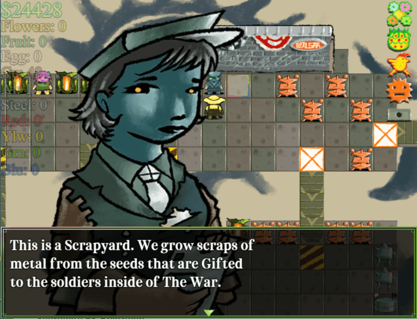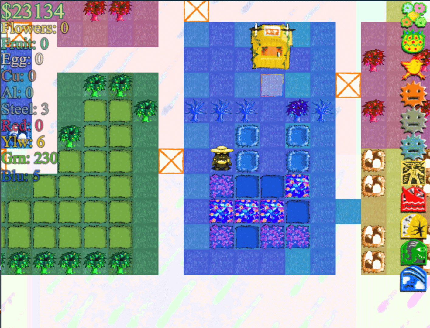 HARVEST MALL is a Farming Game where you play as Harvester, a Junior Farmer who goes through 4 different zones to farm as much as he can. Collect crops, badges, and friends in this simple farming game. Available to play on Browser and also available to Download. Part of "The Way of the Canvas", the same universe as Copper Odyssey and other games in the Mall subseries. This game is a very elaborate modification of the game "Farmland" by Altoc.